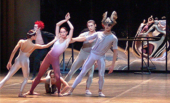 Nicht um tänzerische Wagner-Illustration geht es dabei, sondern um Annäherung an ein Phänomen, den Kommentar, die paraphrasierende Lesart. Musikalisch wird jener Tanzmonolith auch nicht vom reinen Opernklang, sondern einer Collage aus Live-Klavier, Klavier vom Band und ausschnittsweise der Einspielung erlesener Plattenaufnahmen getragen. Arbeitsatmosphäre verbreitet dieses Verfahren, und die setzt sich auch in der Inszenierung fort. Sie spielt in einem riesigen Ballettsaalhalbrund (Peter Sykora), in dem das zweietagige Ambiente des Mariinsky-Studios in Petersburg auf einen modernen Trainingsraum mit Spiegeln stößt. Zwischen Probe und Aufführung pendelt dort das verzwickte Geschehen um Gold und Macht, Liebe, Betrug und Verrat. Michael Denard als Sprecher zitiert ausgewählte Texte Wagners, ist gleichsam alter ego des Wanderers und Wotans und agiert, wie auch die Pianistin Elizabeth Cooper, stücklang auf der Szene mit.