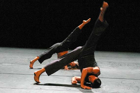 Unter dem Titel „A Stream“ zeigten Olga Cobos und Peter Mika, die seit vier Jahren ein Choreografen-Duo bilden, zwei Tanzstücke in der Muffathalle. Das erste wurde als eine völlige Neubearbeitung des Trios „Episod III“ ausgewiesen, das zweite als brandneues Quartett angekündigt. Für beide Teile nutzten CobosMika die mal minimalistischen, mal esotorisch-sphärischen Klänge von Maxime Iioudine, die, beinahe diskret im Hintergrund gehalten, ihre reiche Phantasie für Bewegungen zwischen Boden und Hebungen beflügelte. Beide Stücke sind geprägt durch Moves von plastisch anmutender Intensität, die