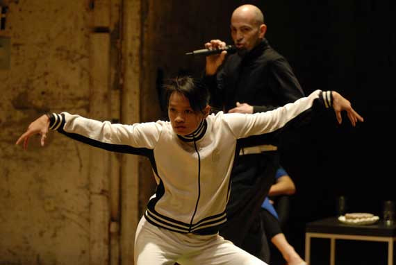 Auf gelb grundiertem Fußballfeld irren acht Darsteller umher, bis ein Dicker mit Schlips sie nach Schiedsrichterart ordnet. Sie werden abgezählt, stoppen sich gegenseitig in ihrem Lauf. Auf wen alle zufällig zeigen, der muss zu Boden. Schuld verteilt sich nach irrationalen Gesichtspunkten. Denn Christoph Winklers neue Produktion „who by fire“ für die sophiensaele zielt wieder auf Großes. Diesmal verhandelt er das Thema Sünde. „Über Mimese, Ziegen und andere Sündenböcke“ lautet der Zweittitel, den ein kenntnisreicher Traktat im Programmheft kulturgeschichtlich-philosophisch unterfüttert.