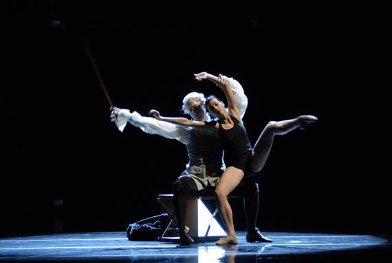 Unangestrengt, heiter, souverän, unehrfürchtig und dabei hochmusikalisch gleiten die Beiträge ineinander über. Das Auge mag sich an den tänzerische Abfolgen von immensem Tempo, mitreißender Fließkraft und komplizierter Verschachtelung nicht sattsehen. Im Allegro fliehen Paare mit Zöpfen aus einem fröhlichen Wettstreit auf das Gerüst, dessen Membrane sich gewellt haben und das nun wie ein mehrschichtiger geometrischer Park zum Lustwandeln wirkt. In soviel Leben hinein meldet ein weiblicher Tod seine Rechte an. Frauen flüchten sich darüber in exaltierte Posen barocker Empfindsamkeit. Zum flinken Satz eines Konzerts für zwei Violinen werden aus Bögen Floretts im Kampf um die rechten Noten; ein Menuett aus dem Notenbüchlein der Anna Magdalena scheint Bach seine Muse und Gemahlin zu bescheren. Am Ende schluckt die Musik in Gestalt einer schreitenden Reihe alle Liebespaare.
