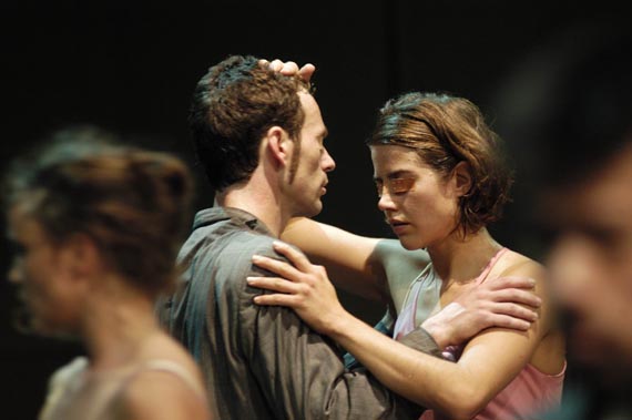 Als ein Paar mit Augenbinden nacheinander tastet, nehmen endlich zwei Menschen einander wahr, um dann im Tango-Ringkampf zu stranden. Die anderen beobachten sich selbst in Spiegeln, kleben eine Frau auf den Boden, übertanzen sie in steigendem Tempo mit Pumps, dass man um ihre Gesundheit bangt. Das schönste Solo des Abends obliegt Hironori Sugata: In rotem Fummel und Sakko tanzt er sich rund und harmonisch fast in Trance und leitet den überraschenden Schluss ein. Nackt verklumpen und betten sich die vier Tänzer und drei Tänzerinnen zärtlich zum Leiberberg, der doch wieder Hoffnung macht auf jene Nähe, die der Abend bis dahin schon verloren gegeben hatte.