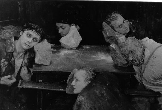 „Woyzeck – oder der Entwurf des Taumels“ nennt Nadj seine Version des Büchnerschen Dramenfragments von 1994. Jetzt war das Werk in der Bearbeitung von 1996, im Rahmen des 18. Festivals „euro-scene“ in Leipzig, an zwei Abenden vor restlos ausverkauftem Haus zu sehen. Nadjs taumelndes Theater findet in einer Art Karton statt. Es braucht keine Worte. Die „Wunde Woyzeck“ schmerzt, der Schrei ist im Raum. Die Stille der Figuren in den mit Ton und Lehm beschmierten Kostümen mit ebenso beschmutzten Gesichtern ist von bohrender Intensität. Sie taumeln und wackeln zwischen Leben und Tod in der Enge