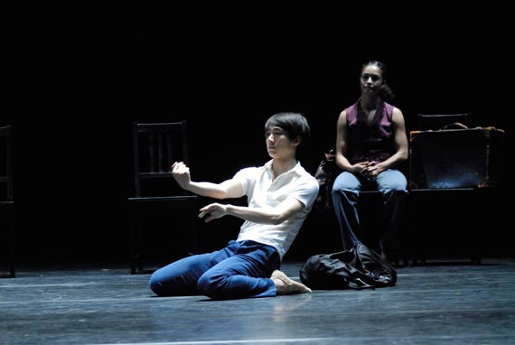 Die fand er diesmal im Nationalballett China. Gemeinsam mit den koreanischen, indischen, slowakischen, südafrikanischen und spanischen Mitgliedern seiner Truppe erzählen sie, was passieren kann, wenn man auf einem Flughafen festsitzt. „bahok“, Flugzeugträger in Bengali, zwängt acht Reisende unfreiwillig zur Gemeinschaft zusammen – Zeit, in Kontakt zu treten. Jeder denkt zuerst an das, was ihm Heimat bedeutet: Geburtsort, Familie, die mitgeführten Schuhe des Vaters, Erinnerungen. Sprachbarrieren tun sich auf, Ignoranz des Anderen gilt es zu überwinden. Eine Frau will reden, keiner mag ihr zuhören, keiner einen Zettel mit ihrem Namen haben. Eher flüchtet man sich ins Fotografieren und Telefonieren.