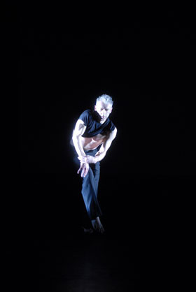 Auch Videoschnipsel von Baumanns früheren Soli blitzen auf, bringen den Tänzer auf der Bühne mit sich in zeitverzögerten Disput. Wenn die Bilder erlöschen, ist sich der Darsteller auf der Szene selbst ausgeliefert. Dann befragt er die beiden Stäbe wie ein Bewegungsorakel, steht, sitzt, liegt zwischen ihnen, fühlt sich behaust wie unter einem Dach, zeichnet Viertelkreise auf den Boden, strandet wie in einem Richtblock. Stäbe als Grenzmarken, Verlängerung von Möglichkeiten, Sichtbarmachen kleinster Körperauslenkungen. Bisweilen zitiert Baumann seinen Mentor Bohner in dessen Bewegungskargheit, dann wieder erfasst ein Taumel organisch seinen gesamten Körper, wie ihn Bohner so wohl nicht mehr goutiert hätte.