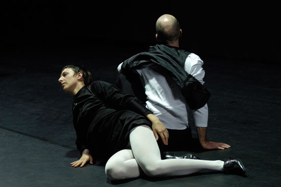 Das suggestivste Bild des Abends entsteht, wenn sich die acht Arme verschieden langsam und auch gegenläufig heben und senken, eng und weit, aus dem Quartett ein pulsierender Ein-Körper wird. Klar und streng wie ein Gregorianischer Gesang wirkt dieses Ritual. Dann erlischt das Licht, schwellen machtvoll Sopran-Vokalisten an. Wieder stehen da alle vorn, wieder brennt eine Kerze. Mit ihr leuchtet man ins Publikum hinein. Weniger puren Tanz als eine bewegte Plastik von kalkulierter Schwarz-Weiß-Ästhetik bis in die Kostüme hinein bieten 60 Minuten lang Wilhelm Groener. Gemeinsam mit Maria Francesca Scaroni, Ulrich Huhn und der versteckt platzierten Sängerin Johanna Peine erzielen sie, diskret hinter ihrer Rolle zurücktretend, eine reinigende, entschlackende Wirkung beim Betrachter.