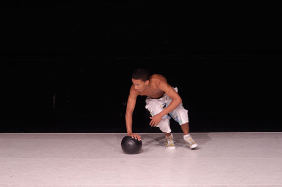 Auch den Menschen bezieht die Objektrecherche ein. Ein Mann schleudert eine Partnerin, die andere springt so über sie, wie sich einst Roms Gladiatoren an drehenden Messerkonstruktionen ertüchtigten; eine Liegende auf dem Skateboard fährt unter der Figur „Schubkarre“ durch. Der Dicke verwickelt eine Frau ins Sitzspiel mit seinem Ball, das der HipHopper übernimmt und mit einem Behinderten zum schönsten Duett eines Stücks ausbaut, das wiederholt Amöbenkriechen zitiert, gänzlich unangestrengt und unaufgedonnert Beziehungen wie Mycelfäden spinnt, Mensch und Gegenstand in Bezug setzt. Zu wunderbar friedvoller Musik wie aus Wasserwelten choreografierte Paulo Azevedo mit viel Witz einen Kosmos aus Frieden, Harmonie, solidarischem Miteinander. Der Mensch flitzt wie im Tempowettstreit um ein drehendes Rad, eifert im Dauerpurzelbaum einem kreisenden Autoreifen nach. Unterm Bauch des liegenden Dicken verschwindet ein Ballon, den eine aufsitzende Frau zum Platzen bringt. Am Ende verblüfft der Dicke unter fröhlichem Beifall mit einer Sitzbalance auf dem Reifen.