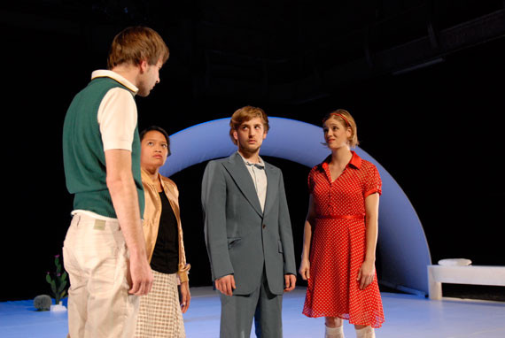 Witz bringt, wie noch mehrmals, Jörg Schiebe ein, der sich kaum zu gehen traut, weil er schon die Kritik im Nacken spürt. Man kann auch ohne Plan gehen, aber das Ziel muss klar sein, wird er belehrt. Das würde man gern Christoph Winkler ins Stammbuch schreiben, der ständig zielt, ohne wirklich abzudrücken. Seine Darsteller reden sich in Englisch und Deutsch um Kopf und Kragen, erzählen Geschichten vom Heiraten, ob oder nicht, vom Lieblingsfilm, von fallenden Herbstblättern und Depressionen, Kindheitserlebnissen, Sternbildern, dem ersten Tanzwettbewerb. Vom Sesshaftwerden mit Mann und Kind, Auskosten der Freiheit zu Drogen, Männern, Reisen und dass man sich dennoch nicht wohl fühlt, weil die Strukturen um einen herum immer dichter werden. Und sie denken nach, ob man viel ausprobieren oder sich doch lieber auf einen Weg konzentrieren soll. Ehrlich klingen manche der Nachdenklichkeiten schon, nur fehlt ihnen die ordnende Hand eines Regisseurs, der sein Ziel kennt und dem Wildwuchs der Worte gegensteuert. So ereignet sich allzu vieles auf dem Niveau einer gehobenen Schüleraufführung, produziert pure Langeweile, erstarrt mehrfach im Stillstand, etwa während Sarah Grethers Illusions-Schlusspalaver. Alle sind bis dahin aufgebrochen, irgendwo angekommen, wissen nicht mehr, ob sie drin oder draußen sind: Draußen bin ich ehrlicher, sagt wer, man könne ja nicht ewig drin bleiben. Dass sie überhaupt reinkommen, hätte man den Darstellern gewünscht. Eugene Boateng darf kreischen, Schiebe grunzen, Martin Hansen seinen Körper herumreißen. Wenn sie Sequenzen lang tanzen, Anna-Luise Recke, Christine Joy Ritter, Boateng, Grether, auch in Duos, sieht man, wieviel wertvolles Potenzial hier verschleudert wurde. Die „Goldene Himbeere“ für die schwächste Produktion: ein Nichts von tragischem Ausmaß. Bis 28.11., 20 Uhr, Sophiensaele, Sophienstr. 18, Berlin-Mitte
