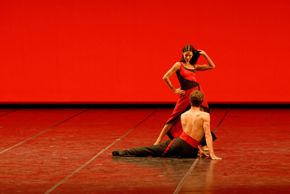 Publikumslieblinge wurden weitere Solisten des Staatsballetts. In „Intimate Distance“ von Jiří Bubeníček zur Collage seines Bruders Otto gestalteten prägnant Beatrice Knop und Dmitry Semionov vor glutrotem Hintergrund Liebe und Hölle einer Beziehung, logisch sich entwickelnd, mit finalem Sturz aus dem Kuss. Dmitrys Schwester Polina adelte mit fehlerfreiem Handwerk und bestechender Persönlichkeit ein mehrteiliges Solo von Renato Zanella nach Walzern von Strauß Sohn zum Juwel des Abends. Den Bogen von Humor zu Tragik schlugen Elisa Carrillo Cabrera und Mikhail Kaniskin: Ihr „Carmen“-Duo „Showtime“ von Eric Gauthier wechselt von Probe zu Vorstellung und endet mit gegenseitigem Abmurksen. Der Ansturm der Gala-Gäste richtete weniger Schaden an. Als glänzende Tänzer wussten sich Natalia Ledovskaya und Semen Chudin einzuführen, wiewohl ihr „Ball der Geister“ zum Mittelsatz aus Chopins Klavierkonzert Nr. 2 in Dimitri Brianzevs Ausformung eher den Geist von gestern atmete. Ihrem Adagio aus Tom Schillings „Abendlichen Tänzen“, vor Dezennien am Moskauer Stanislawski-Nemirowitsch-Dantschenko-Theater einstudiert, fehlte ebenso das tiefere Verständnis wie Julie Kent vom American Ballet Theatre und Wieslaw Dudek im Duo aus Uwe Scholz’ Mozart-Klavierkonzert. Blass blieben in beiden Beiträgen Mizuka Ueno und Naoki Takagishi vom Tokyo Ballet.