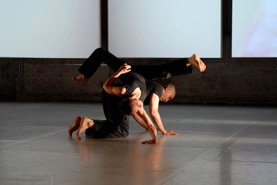 Schon der Raum hat Spannung. An der Rückwand hängen vier weiße Leinwände, den Boden bedeckt ein weißer Tanzteppich. Leinwände und Teppich in ihrer Klarheit reiben sich mit dem unverputzten Mauerwerk im Saal des Dock 11. Unscharf zerlegt und ruckhaft langsam fährt die Kamera über Leiber, Köpfe, Hände. Um Menschen, ihre Widerspiegelung im Video, die Interaktion von Bild und Realität dreht sich, was Walter Bickmann als „icon“ eine Stunde gediegen und ruhig entwickelt. Vom Balletttänzer in Wien über den Akteur bei Johann Kresnik, den Tanztheaterleiter in Stendal führte sein Weg. In Berlin gründete er 2008 eine Videoplattform für zeitgenössischen Tanz. Drei Tänzer stellt er für „icon“ auf die Szene, nur Stella Zannou liegt. Zunächst korrespondieren Akteur und Videobild, ehe sie ihr Eigenleben entfalten, sich aufeinander beziehen. Erster Höhepunkt ist Zannous Bodensolo, das mit dem zeigenden Finger des erhobenen Arms beginnt, den Arm als Motor nutzt. Zu unwirklich skulpturalen Gebilden renkt er den Körper, größer und rascher wird der Taumel über den Boden. Immer wieder suchen im Folgenden Körper ihre Begrenztheit zu sprengen.