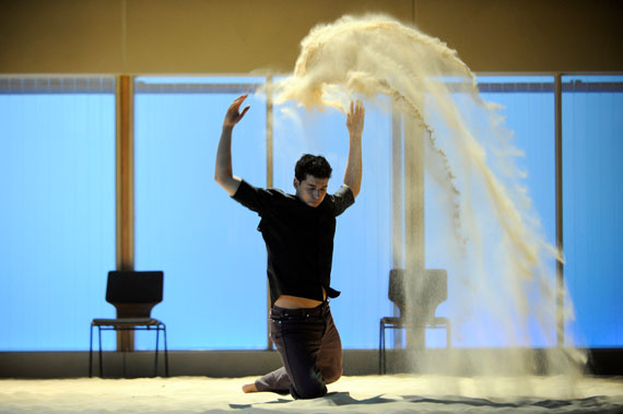 Die Stirn in Weltschmerzfalten gelegt, sitzt Dirk Kazmierczak pathetisch hingegossen auf einem Stuhl. Wie von einer Tarantel gestochen stürmt Gianni Cuccaro herein und überschüttet eine Ahnungslose gestenreich mit einem Furioso an Vorwürfen. „Dies ist mein Tag!“ jubiliert Brigitte Uray, um im Nu aus dem siebten Himmel ihrer Glückseligkeit in die Tiefe todtrauriger Mutlosigkeit zu stürzen. Absolut lust- und antriebslos lamentiert Adrian Look „Ach ja… Nee, nee… Was soll’s…“ und gleitet wie ein Sack vom Stuhl auf den Boden, rappelt sich hoch, sackt wieder weg. Jeder Mensch ist mal