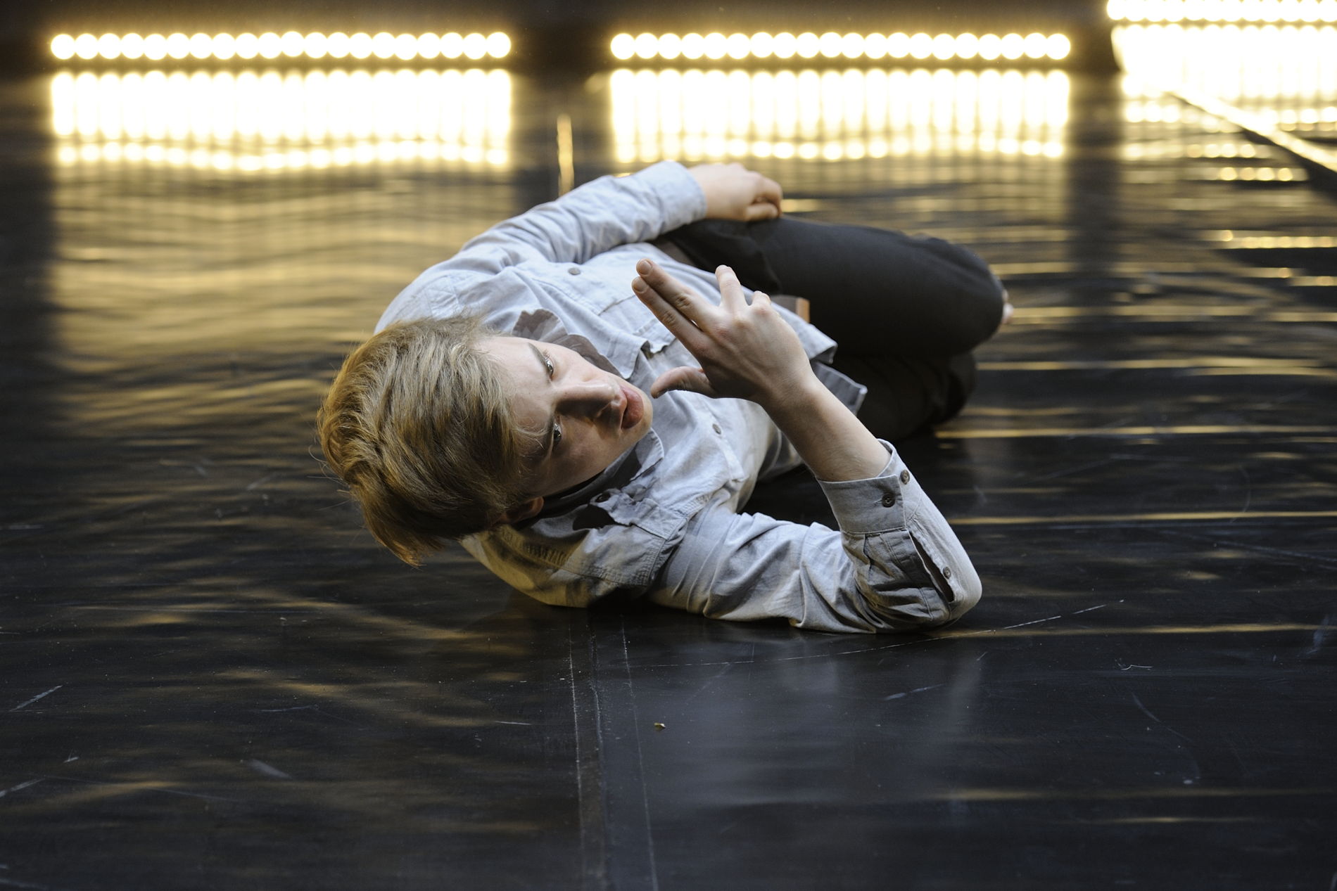 Martin Hansen, der junge Australier mit internationaler Karriere, in Berlin ansässig, ist ein Glücksfall für den Choreografen. So könnte Baader gewesen sein, changierend zwischen Unschuld und Auflehnung, der, schon auf dem Boden, noch nach Form sucht, die Hand kokett in die Hüfte gestemmt, dazu stets schussbereit. Auf fünf Stoffbahnen, die Hansen entrollt, liest man Texte des Revoluzzers: gegen den US-Imperialismus, für die Revolution, mit der Stadtguerilla als bewaffneter Kampffront. Hansen tarnt sich da mit Perücke und Sonnenbrille. Keine Stabilität findet sein Tanz, wie Baader kein Leben fand, gestrauchelt zwischen Wollen und Wirklichkeit. Dann, zu gleißendem Licht, Baaders Stimme in Selbstverteidigung vor Gericht, in wirrer Rede wider die Bundesrepublik als Subzentrum der USA, gegen Vietnamkrieg und Aggression, sich zu einem „faschistischen Militärgerichtsprozess“ versteigend. Nur noch im Slip agiert der Tänzer, atmet flackernd, stürzt, findet nicht mehr Worte für das, was ihn bedrängt. Gefangen in kruden Theorien, wird er zum sprachlos kriechenden Tier. Seine Siegerpose, die Hände über dem Kopf, hat jede Glaubhaftigkeit eingebüßt, ist letzte Schutzhaltung eines Gescheiterten kurz vor jenem Suizid. Winkler und Hansen haben mit diesem physisch enorm zehrenden Ein-Stunden-Solo bewiesen, was zeitgenössischer Tanz zu leisten vermag, wenn er sich auf sich selbst besinnt: im ansonsten leeren, lichtgefüllten Raum nur durch körperliche Aktion von Selbstdarstellung bis Selbstzweifel Schichten einer Politpersönlichkeit freizulegen.