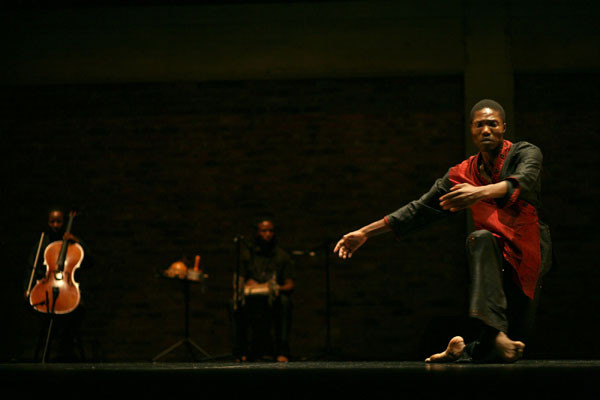 Eine Ausnahme macht „Sueur des Ombres“ der 2000 formierten, im senegalesischen Dakar beheimateten Compagnie 1er Temps. Dem Exil-Kongolesen Andréya Ouamba geht es laut Vorankündigung um Kriegserfahrungen. Was seine sechs Akteure im Schummer des Anfangs unverständlich brabbeln, mag just das sein. Wenn ein chefartiger Mann immer wieder einzelne Darsteller rüde ins Lichtkarree ihrer Existenz stößt und zu Fall bringt, dann während der Erzählung die Münder schließt, den Redeschwall so kanalisiert, kann man den Wortsinn erahnen. Kryptisch bleibt dennoch vieles im einstündigen Stück. Starke Bilder gibt es: Mit Bambusstäben flankiert man den Weg einer stummen Rednerin, deren Lebensraum mit denselben Stäben zum kopfbegrenzenden, strangulierenden Dreieck eingeengt wird. Ob die Formation mit grinsenden, zähnebleckenden Mündern unsere Afrika-Klischees meint oder Minstrel-Shows parodiert; ob zeitgenössischer Tanz hier nur postkolonialer Import ist, ohne hinreichend eigene Verarbeitung; welche Dramaturgie greift, bleiben Fragen.