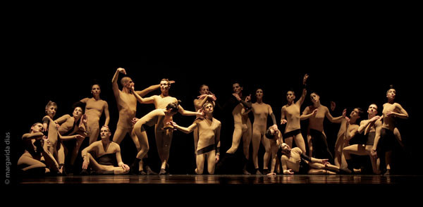 Die stellen sich mehr noch bei Tânia Carvalhos Überchoreografie „Icosahedron“. Ihr Titel bezieht sich auf Rudolf von Labans Raumlehre von den 12 Bewegungsrichtungen des Körpers, grafisch visualisiert durch einen Ikosaeder. Die Portugiesin forscht dem mit 20 Tänzern in applizierten Trikots nach, die sie in vier synchron agierenden Fünfergruppen und zähem Fluss dirigiert. Diogo Alvims Knack- und Knistergeräusch steuert, Dauerdämmer verhüllt die formalen, bisweilen tierhaften Muster mit ein paar chorischen Gliederungen. Nach einer Stunde ohne dynamische Entwicklung verzichtete man gern auf den gleichlangen zweiten Teil.