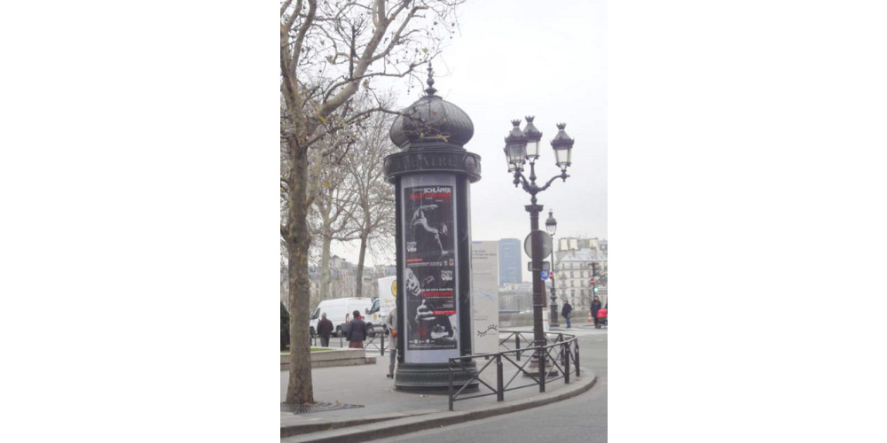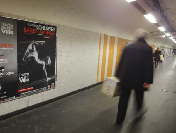 Nein, nein, das mit den 20 000 Meilen unter der Seine ist natürlich leicht übertrieben und alle Metro-Gänge führen ja auch nicht unter der Seine hindurch. Dennoch: Paris erscheint unterirdisch wie ein Schweizer Käse, ein gigantischer, verzweigter Fuchsbau. In einem der Gänge fand ich dann auch das Plakat zum Gastspiel des Ballett am Rhein Düsseldorf/Duisburg, und wo immer ich unterwegs war, fotografierte ich die Plakatstandorte.