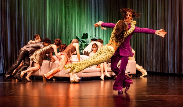 Laut streitend stürmen Oberon und Titania durch den Zuschauerraum auf die Bühne. Man ist zu einer Sommerparty im Hause des Herrn Theseus geladen. Der Gastgeber - im lila Samtanzug und mit barock üppiger Lockenpracht - tanzt schon innig umschlungen mit seiner schönen, sexy Angebeteten Hippolita. Auf dem langen Doppelsofa aalen sich Partygäste. Immer mehr strömen durch die Schnur-Vorhänge von allen Seiten herein. Ausgelassen legen alle eine flotte Sohle aufs Parkett und spielen kreischend die „Reise nach Jerusalem“ zu Jazz von The Doors und Duke Ellington oder Big Band-Sound