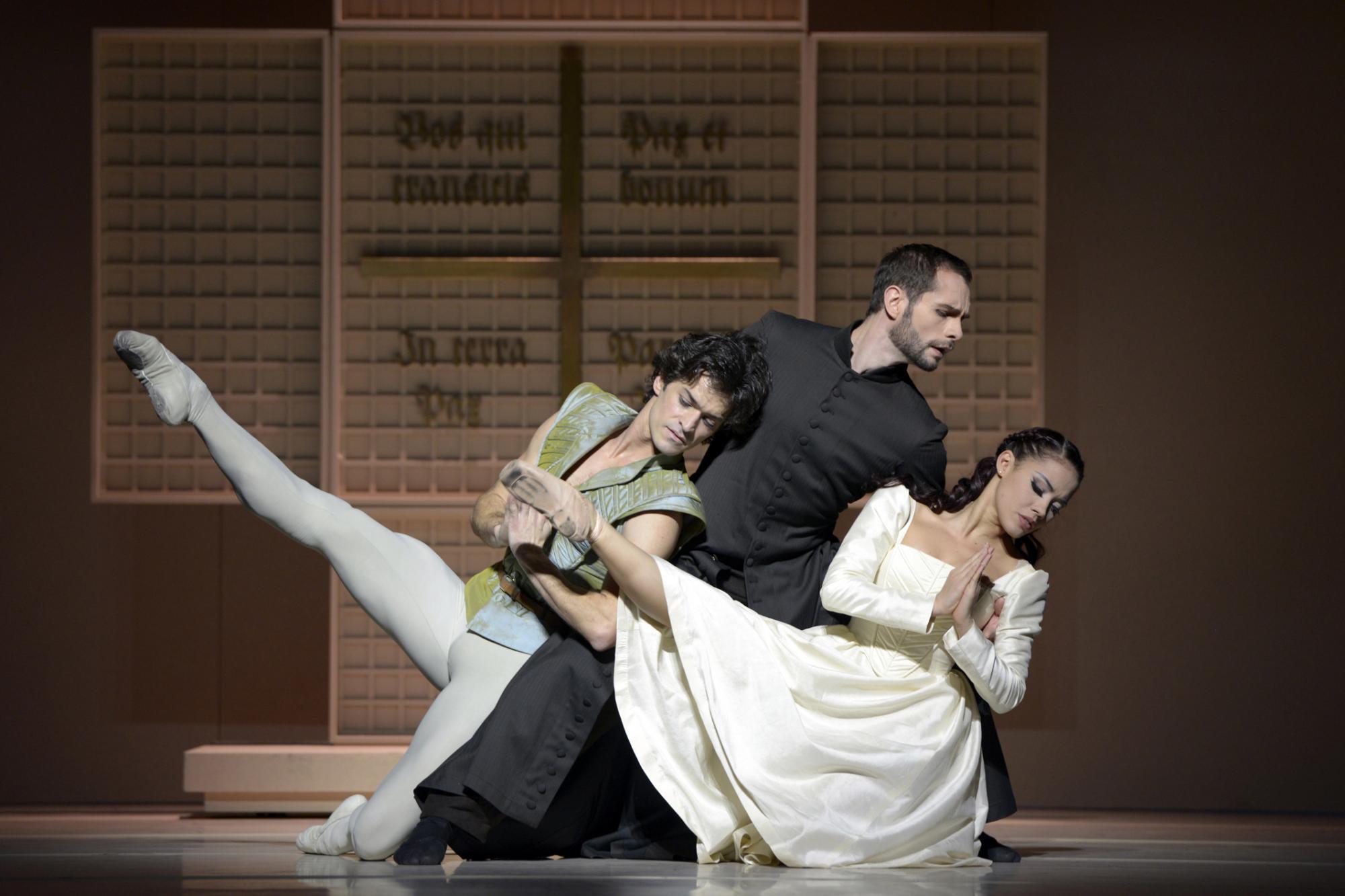 Anstelle des Prologs mit Pater Lorenzo und dem Liebespaar Romeo und Julia als Symbol für die Versöhnung der verfeindeten Veroneser Familien Montague und