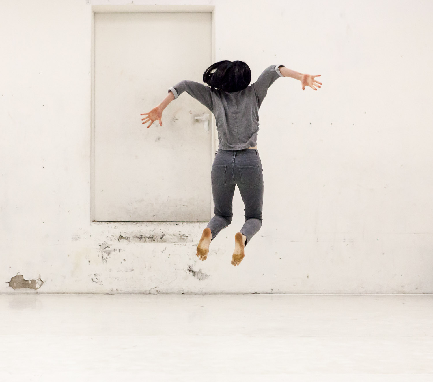 Zufit Simon. Diesen Namen muss man sich merken. Sie bewegt sich weit auf die Tanzfläche mit trocken-kurzen, Arme schleudernden Sprüngen – und man weiß sofort: „all about nothing“ wird gut. Der hellgraue nüchtern-nackte Raum des Münchner Schwere Reiter, Robert Merdzos metallisch hart schlagender oder gemessen fließender elektronischer Klangstrom und diese (scheinbar) leidenschaftlos ihr Solo formende Tänzerin – das ist eins, von einer Spröde, die fasziniert. In losem grauem Top, grauen engen Jeans, ungeschminkt und mit ihrer schwarzen mitwippenden Perücke so etwas wie der Grau-Schatten eines