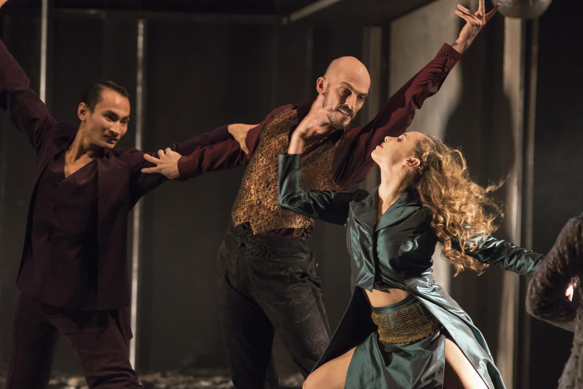 Wenn der Choreograf betont, näher bei Shakespeare zu bleiben als Prokofievs Librettisten, so trifft das einerseits zu, andererseits aber eher gerade nicht. Zu stroboskopisch flackerndem Licht rezitieren die Tänzer aus dem Off in ihrer jeweiligen Muttersprache den Prolog, während in der Bühnenmitte Lorenzo wie in einem Albtraum auf der Stelle rennt, ohne wirklich fliehen zu können.