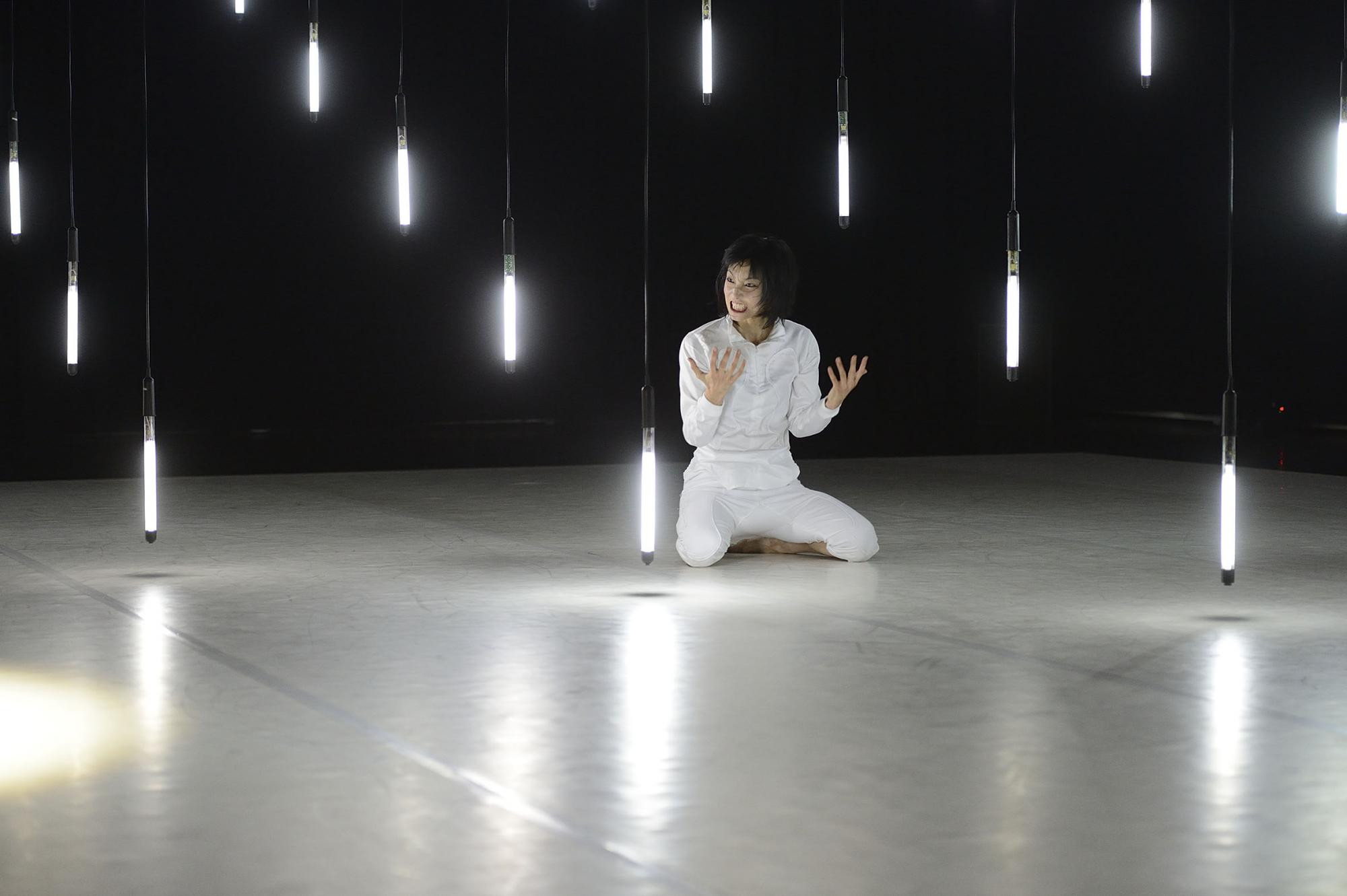 Auf Yui Kawaguchi im weißen Hosenanzug wirkt die Landschaft aus Lichtstrichen aufregend. Behend und biegsam eilt sie durch das verwirrende Spalier, stößt nirgendwo an. Stroboskope heben nur bestimmte Bewegungen heraus, weshalb sie im Flug zu stehen scheint, aus dem Stand an einem Ort am nächsten im Profil sichtbar wird, sich als multiple Persönlichkeit vervielfacht.