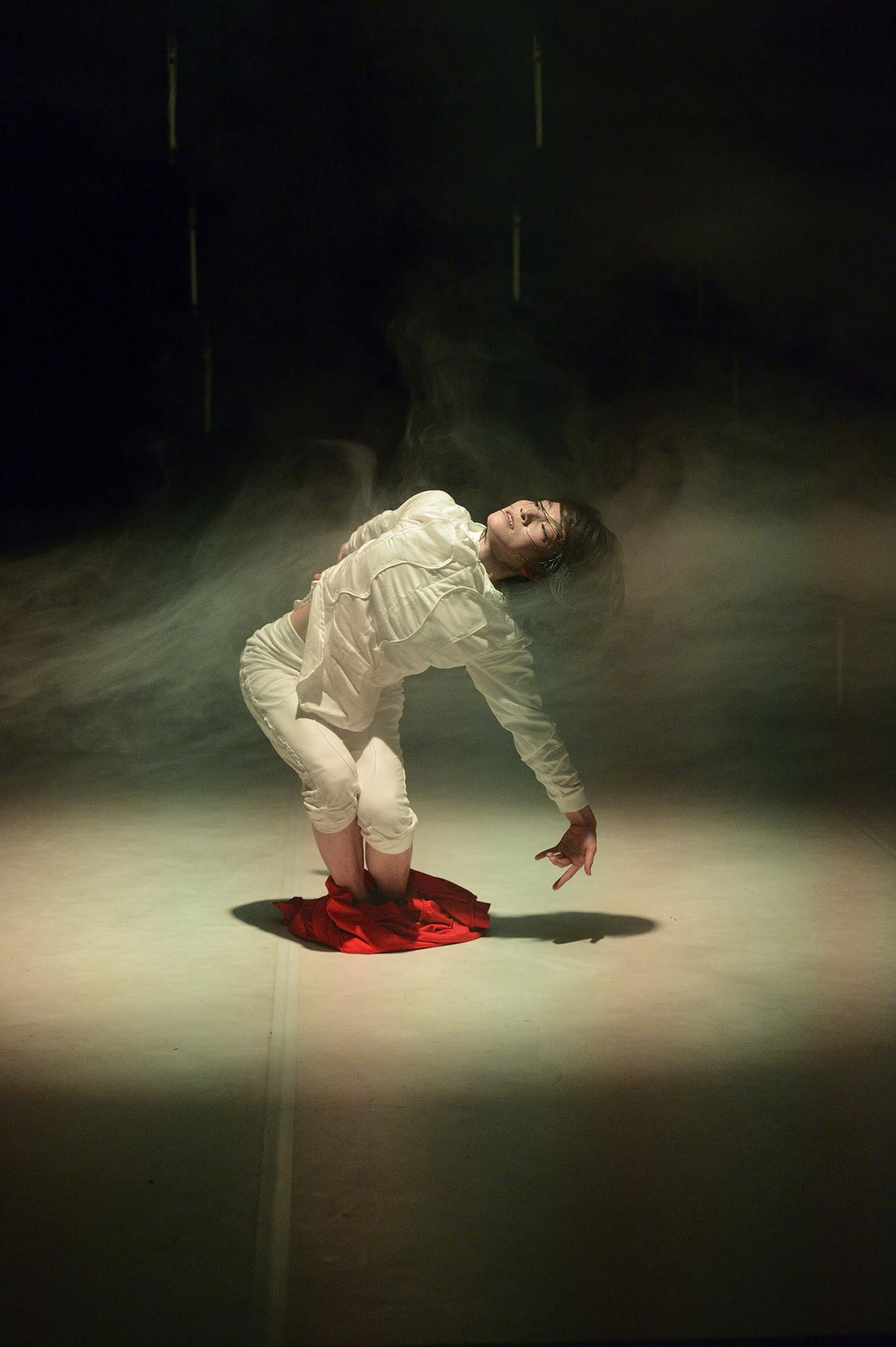 Doch es ist nicht nur die Bühnentechnik, die sie fasziniert. Auch auf Sibin Vassilevs Sound Design aus Geräuschen reagiert sie, ein Flüstern in Japanisch, ein Piepsen oder Knistern, das Plätschern von Wasser. Durch das Wechsellicht wird der Raum luzide, ist in steter Veränderung. Die Tänzerin springt, dreht hindurch, wölbt oder klappt ihren Körper, hockt oder taumelt.