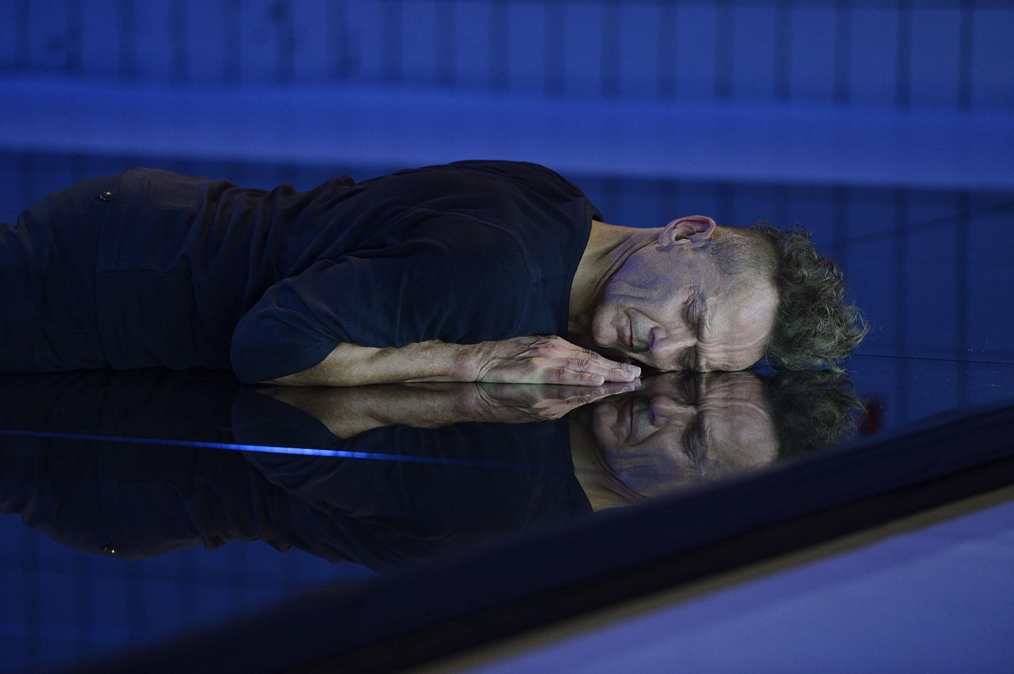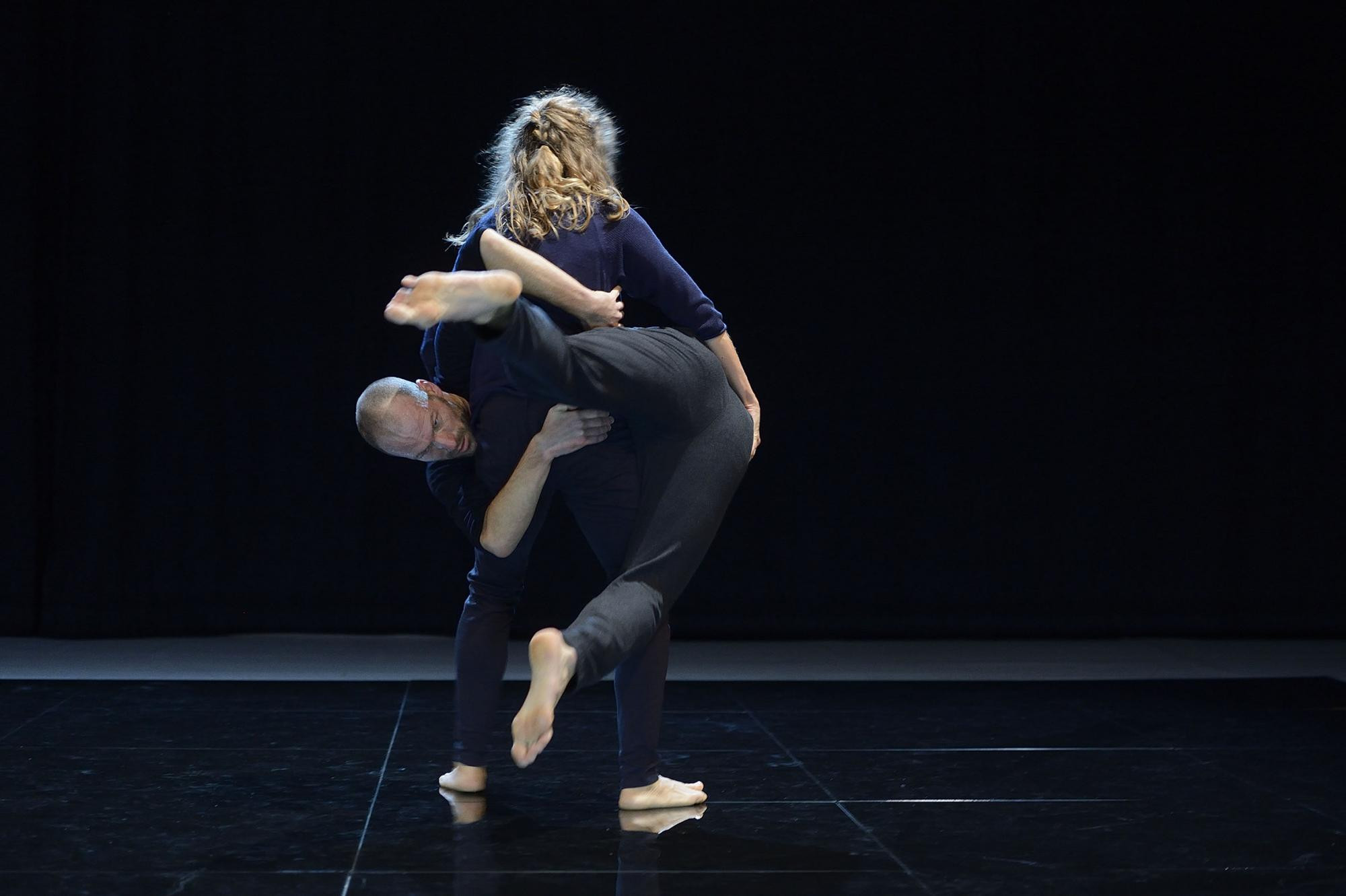 Angst ist auch das Thema von >flirren<, wie es die „Rubatos“ Jutta Hell und Dieter Baumann gemeinsam erdacht, Hell inszeniert und choreografiert hat. Angst, liest man, vor den Krisen des noch jungen 21. Jahrhunderts, von Anschlägen über Bankenkräche, Umweltprobleme bis zum Rechtsradikalismus. Das lässt sich schwerlich in Tanz fassen, wohl jedoch die Gefühle, die solche Ängste im kollektiven Körper auslösen.