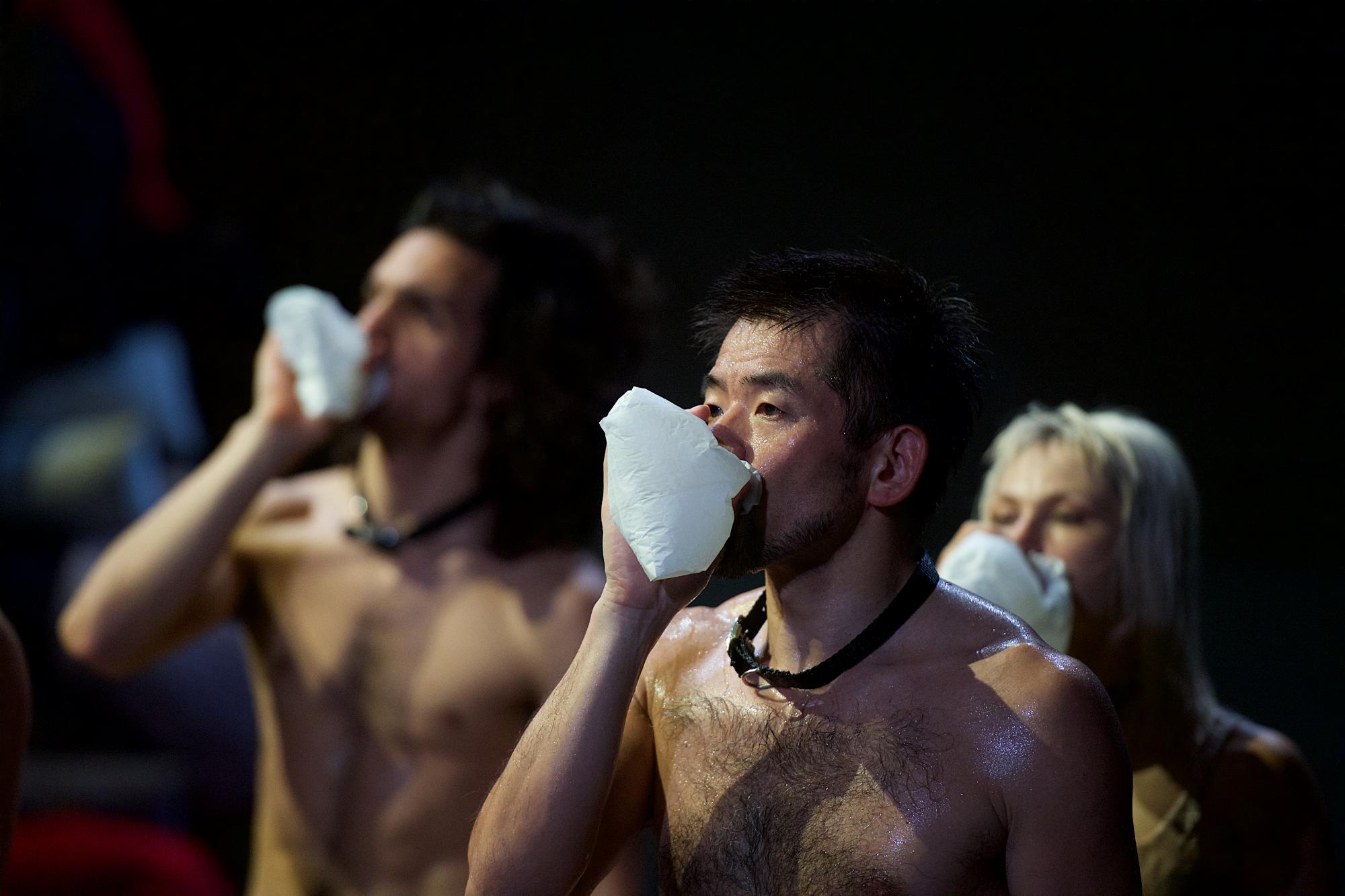 „volto umano“ von Toula Limnaios. Tanz: Alessio Scandale, Hironori Sugata, Karolina Wyrwal (v.l.n.r)
