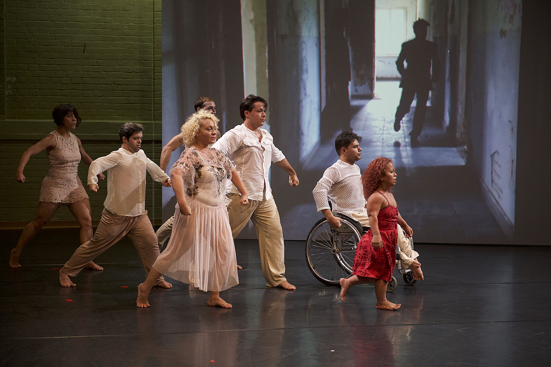 „die einen, die anderen“ von Toula Limnaios. Tanz: Thaise Galvão, Wilson Macário (v), Iego José (h), Alvaro Dantas, Marconi Araújo & Jania Santos (v.l.n.r.)