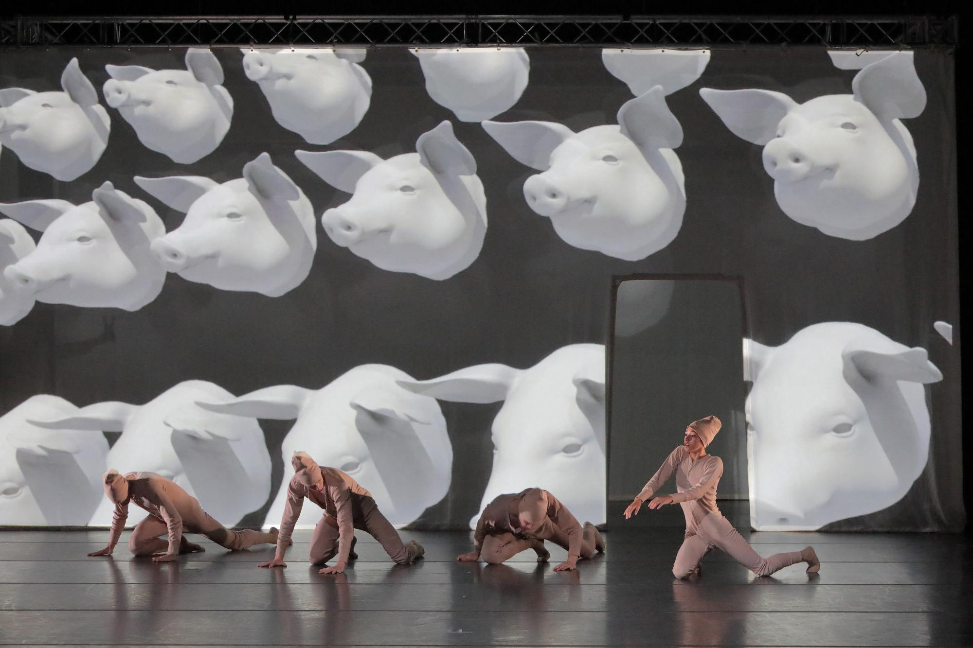 „Abferkeln“ von Dustin Klein, Tanz: Jonah Cook, Matteo Dilaghi, Erik Murzagaliyev und Maria Daniela Gonzales