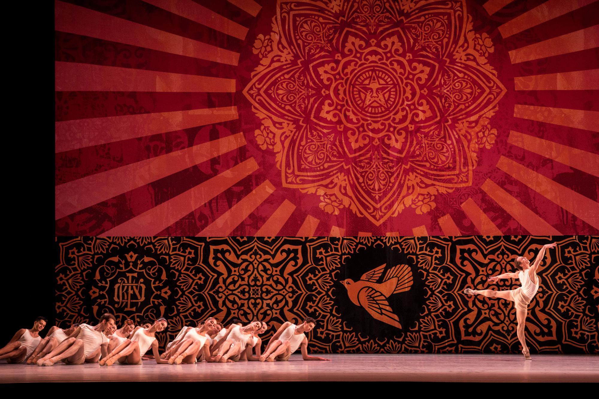 Im südlichen Licht von Brandon Stirling Baker, vor einem Prospekt mit symmetrischen Mandalamotiven im Bühnendesign von Shepard Fairey/ObeyGiant.com, kommen 17 Tänzerinnen und Tänzer sportlich und cool von Reid Bartelme und Harriet Jung eingekleidet ganz lässig auf das Publikum zu. Bis an die Rampe, an den Orchestergraben, wo die Sächsische Staatskapelle unter der Leitung von Eva Ollikainen das erste Klavierkonzert von Bohuslav Martinů spielt. Der Pianist ist Adrian Oetiker, und schon dies ist ein besonderer Gewinn des am Ende stürmisch und jubelnd gefeierten Ballettabends.