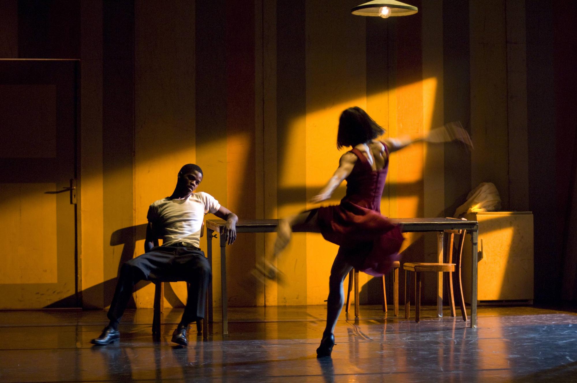 Sehnsüchtig legt sich eine Frau über den Tisch, die Beine in Erwartung gespreizt. Mit dem hinzutretenden Mann kommt es zu einem langen Hin und Her der Gefühle, weil keiner sich offen bekennen mag. Wie im Tango, welch treffendes Bild, verhakeln sich die Beine, prallen Leiber zusammen. Sie erzittert, er tut lässig, will sie einklemmen, sie streift ihm das T-Shirt ab, entwindet sich. Ihm bleibt als ‚Partner’ nur die Tischkante. Die zärtliche Nackenmassage, mit der das Duo dann doch endet, wird wiederkehren, als die zwei Männer eine Kurzaffäre haben. Davor erste Aggressionen: Keiner will andere den Kühlschrank öffnen lassen. Man kippt darauf Sitzende ab, erobert selbst den Platz. Das erbeutete Hühnchen wird zur Trophäe. Als die Rubettes im Falsetto von „Sugar Baby Love“ singen, tanzt eine Frau in rotem Licht ihre Sehnsüchte, der Mann aus der Dusche tritt diskret beiseite, statt zu handeln.