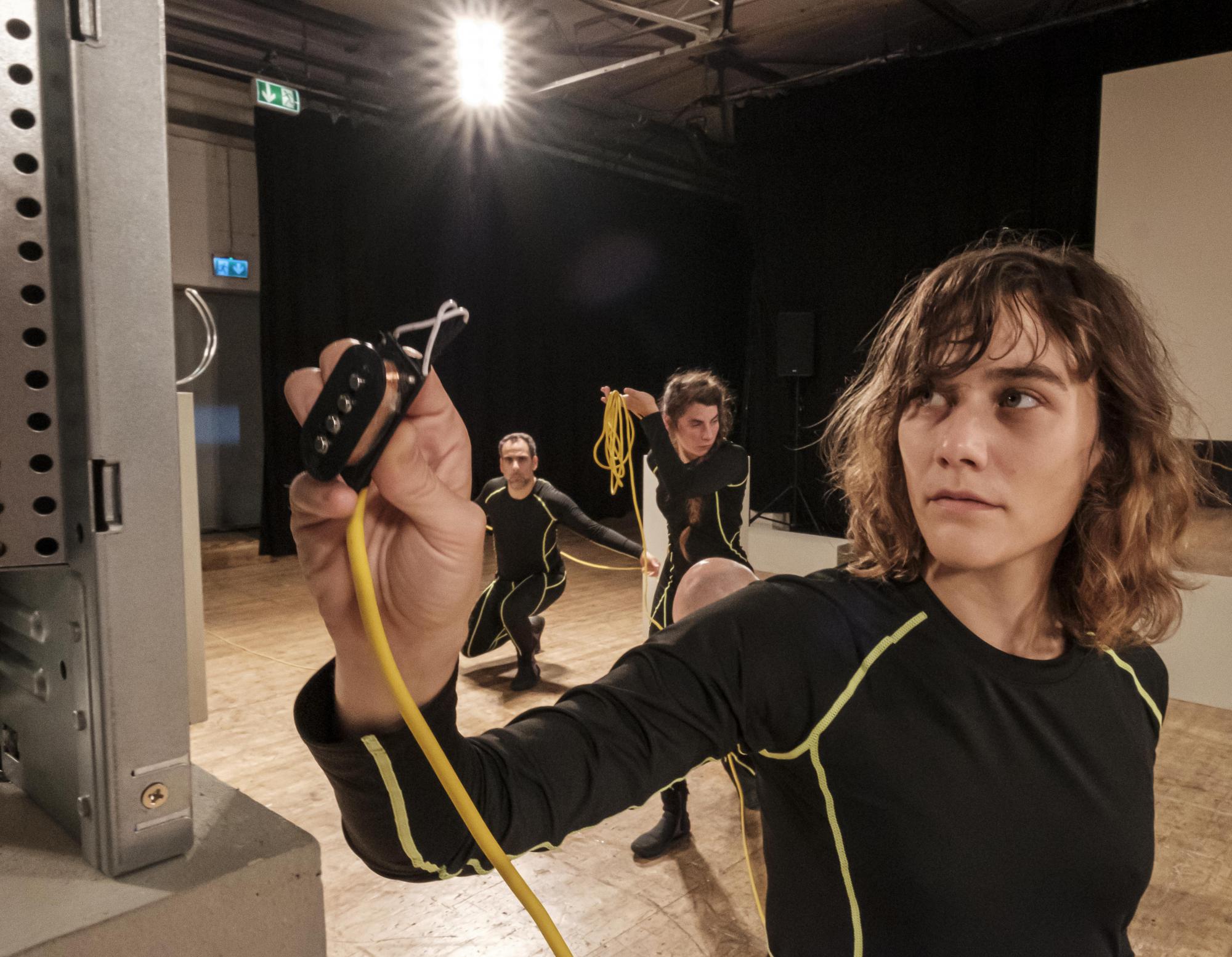 Das Publikum darf sich durch diese Installationsanordnung frei bewegen und beginnt, den Bühnenraum zu