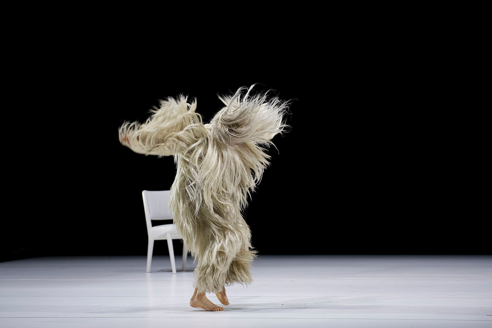 Direkt vor mir im Publikum erscheint ein Mann mit turmhoher Haarpracht. Etwas später, obwohl das Saallicht weiter an ist, irrt der Mann mit der Haarpracht auf der Bühne umher und das Stück „Lib“ von Alexander Ekman beginnt.