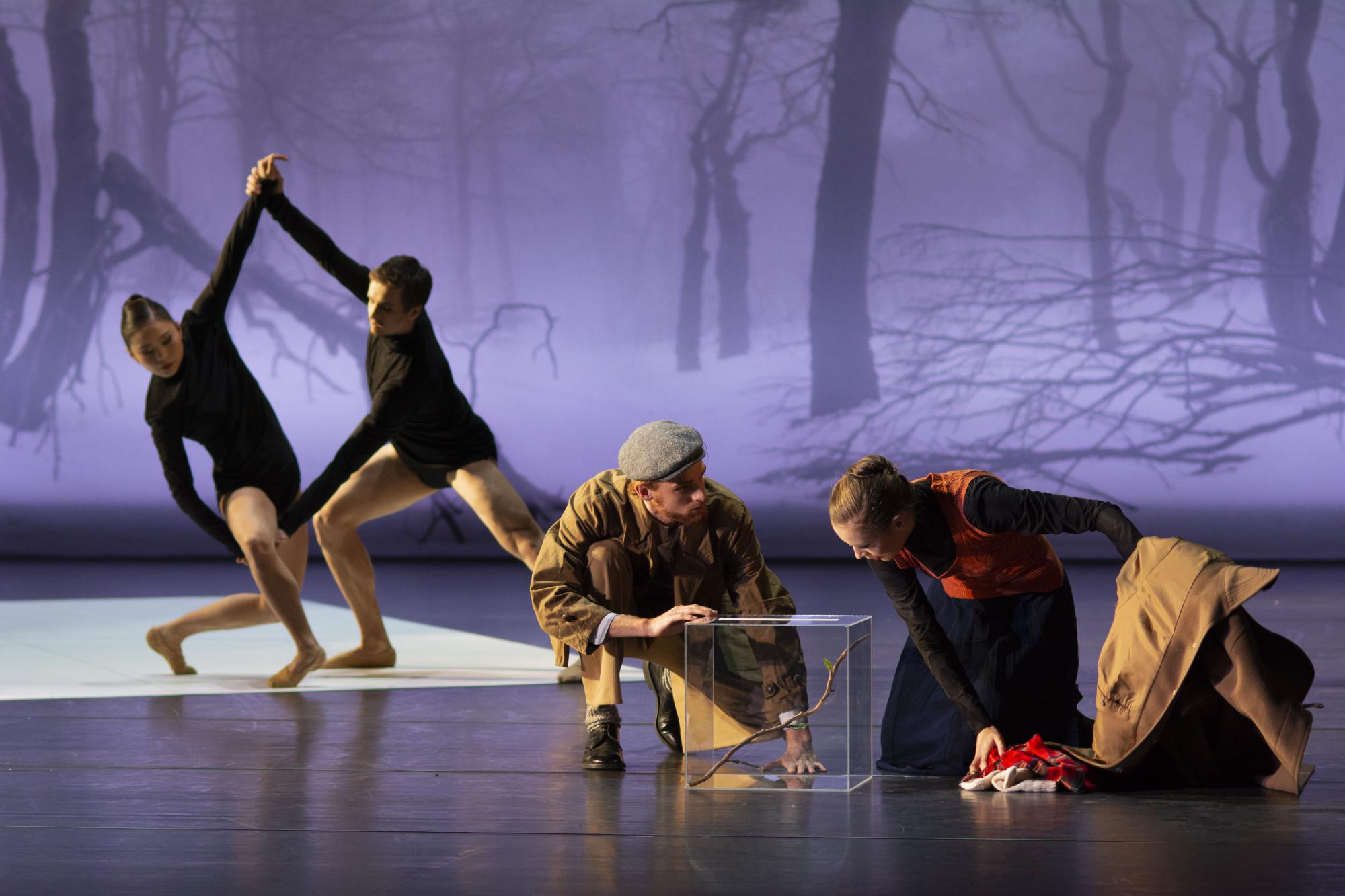 Sein „Verwundenes Bild“, im Oktober für Eisenach entstanden, hat eine besondere Bindung an Meiningen. Die tragende Musik, Johannes Brahms’ Sinfonie Nr. 4, wurde 1885 durch von Bülow mit der Hofkapelle uraufgeführt. Anton Webern ließ sich durch den 4. Satz zu einer Passacaglia anregen; seine Sinfonie op. 21 bildet den Schlussteil der Aufführung. Plucis stellt auf den live von der Hofkapelle unter Philippe Bach aufgespannten Klangteppich ein modern grundiertes Geweb in schwarzen, später roten Bodies für die 15 TänzerInnen. Den Bezug jedoch zum DDR-Thema bringen eher die Fotos und die eingeschobenen Spielszenen: ein umgetragenes Aquarium mit Zweig, das auch Urne für geschönte Wahlen wird. Überzeugender als beim festgefügten Kosmos der Brahms-Sinfonie gerät der tänzerische Umgang mit Webern: als eine Formsuche von Klang und Bewegung im gemeinsamen Freiraum. Symbolhaft dann das Ende: ein imaginärer Vogel darf aus seinem gläsernen Käfig aufsteigen. Sehenswert attraktiv ist die international besetzte Eisenacher Kompanie, wie sie engagiert und wohltrainiert den choreografischen Intentionen nachspürt.