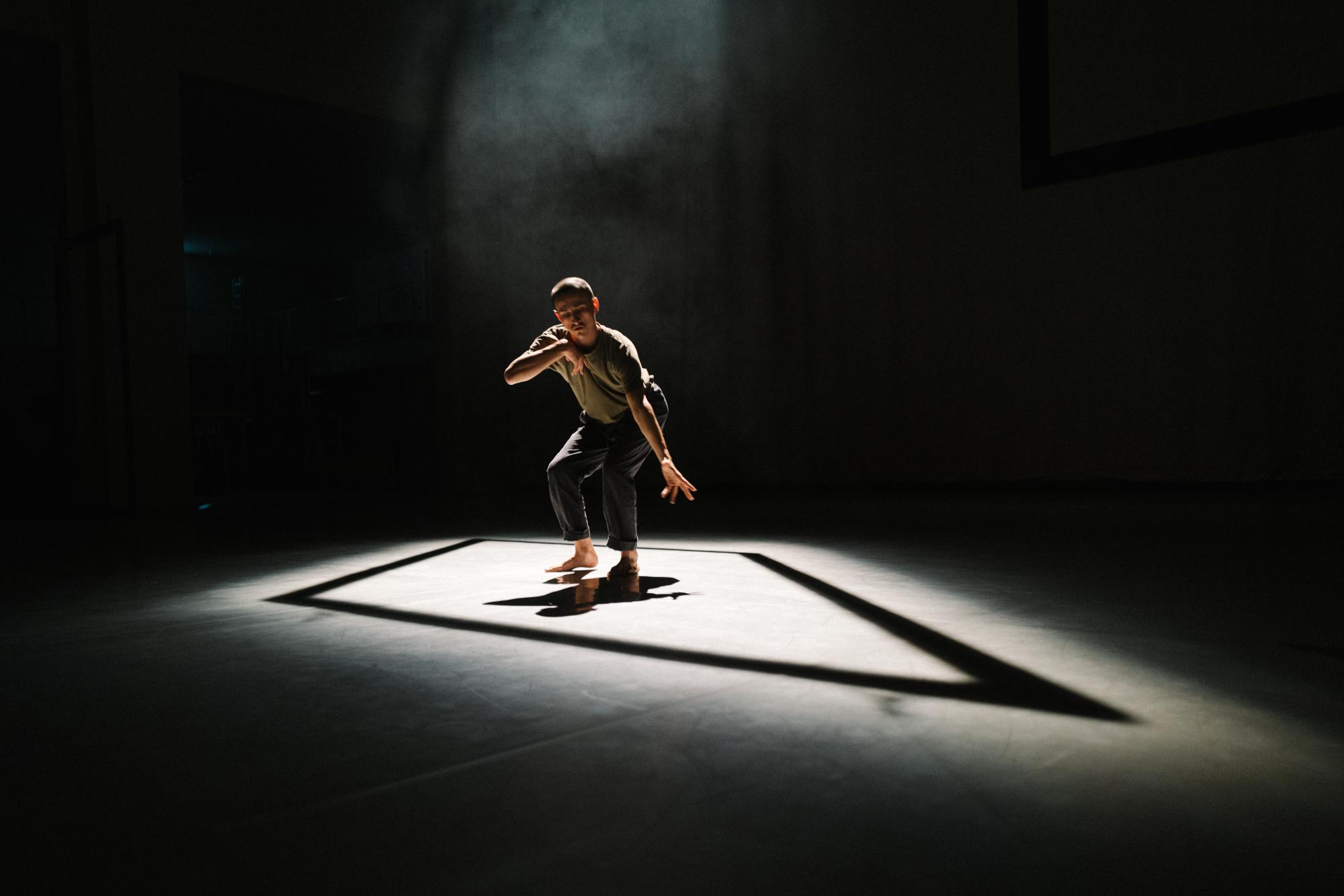 Über der Bühne hängen sechs überdimensionierte schwarze Rahmen. Leer, ohne Inhalt. In jeden Rahmen gehört eigentlich ein Bild, ein Foto, etwas ganz Persönliches, vielleicht eine Erinnerung. Von diesen Erinnerungen erzählt Alexander „Kelox“ Miller in seiner Arbeit „Layover“ in Hellerau – Europäisches Zentrum der Künste in Dresden. Es ist seine Master-Arbeit, mit der er sein Studium der Choreografie an der Palucca Hochschule für Tanz Dresden abschließt. Und er versteht es, jene Rahmen mit ganz persönlichen Eindrücken zu füllen.