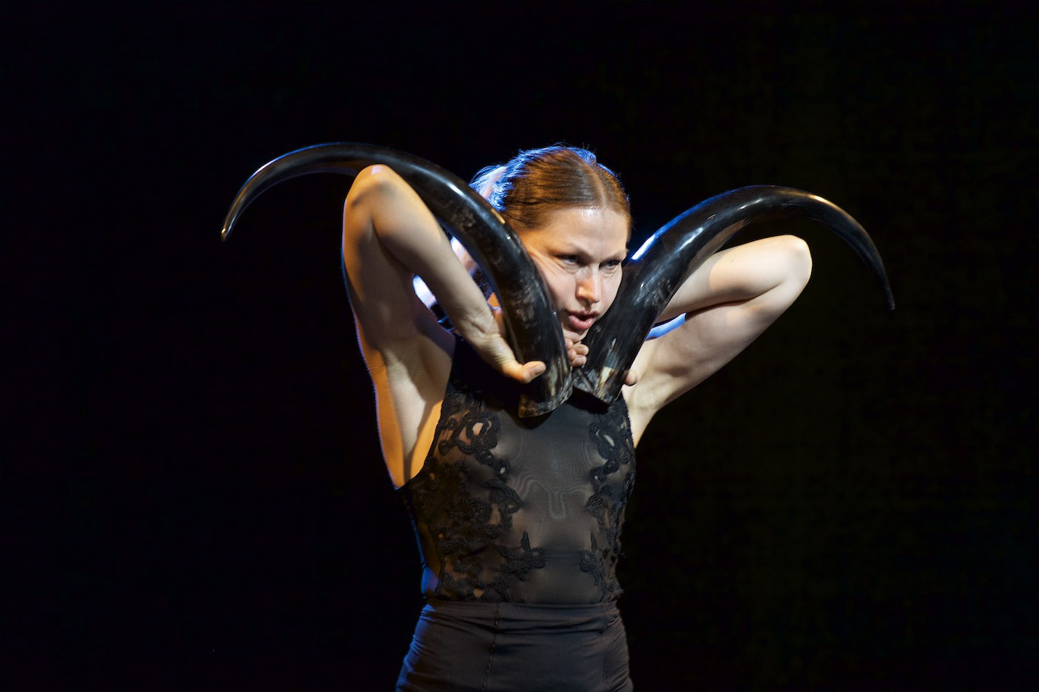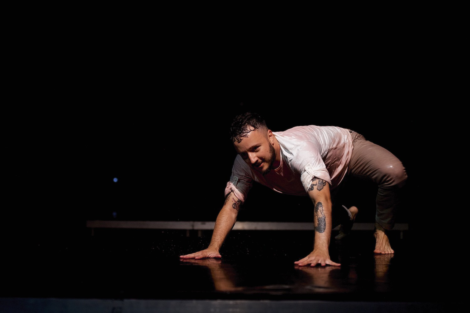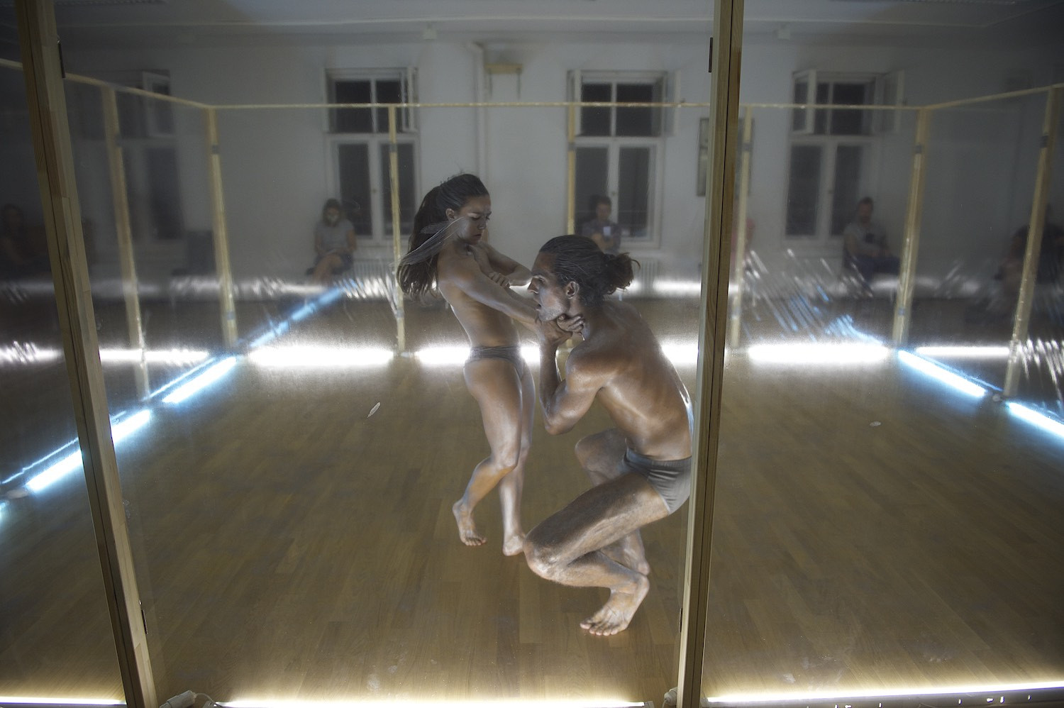 „meantime“ von Toula Limnaios. Tanz: Francesca Bedin (l) & Daniel Afonso (r)