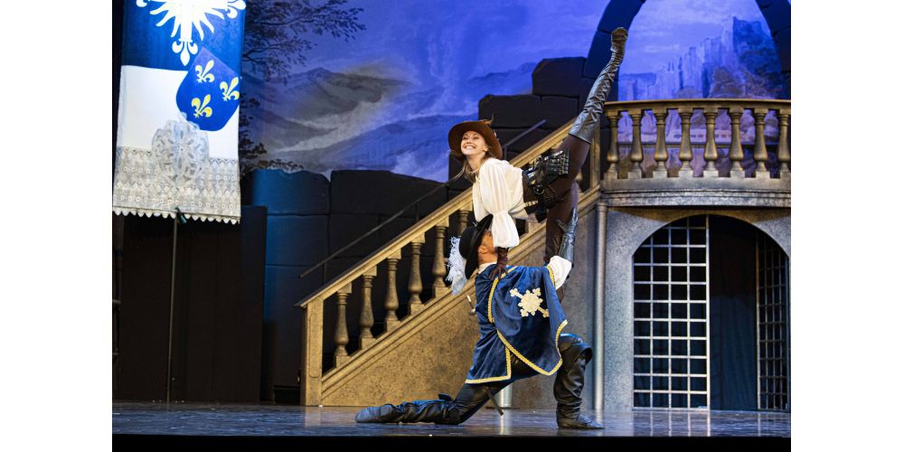 Choreografiert, inszeniert und mit heutigem Zeitbezug gewürzt hat diese launige Persiflage für laue Sommernächte Manuel-Joël Mandon, dem das Cottbuser Ballett bereits seine familientauglichen Abenteuer „Peter Pan“ und „Reise zum Mittelpunkt der Erde“ verdankt. Eng verknüpft hat er die kurzen Bilder mit einer Melange aus rund 40 Musiktiteln, vom schmetternden Prélude aus Bizets „L’Arlésienne“-Suite und einem schwelgerischen Duett aus Delibes Oper „Lakmé“ bis zu Marschrhythmen, passgenauen französischen Chansons, Soundtracks aus Filmen und Heavy Metal. Entsprechend fällt der Tanz aus. Er schließt, neben rein pantomimischen Passagen, Disco, Hip-Hop, furiose Artistik und klassische Elemente ein. Rechtes „Futter“ für das auf 18 Aktive erweiterte Cottbuser Ballett. Im Tanzmix dieser fröhlichen Klamotte kann es erneut beweisen, über welche stilistische Breite es verfügt und wieviel unverbrauchte Spielfreude hinzukommt. Emily Downs als feuriger D’Artagnan ist hinreißend, Stefan Kulhawec imponiert als schneidiger Athos, schmiegsam charmiert und intrigiert Venira Welijan als Lady de Winter, agil glossiert Alyosa Forlini den Kardinal. Nicht zuletzt Adriana Mortellitis opulente Kostüme machen den zweistündigen Abend zu einem entspannenden Ausflug in weniger bedrängte Zeiten.