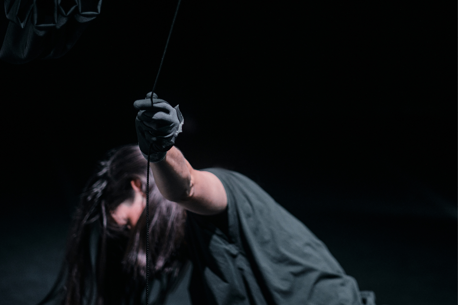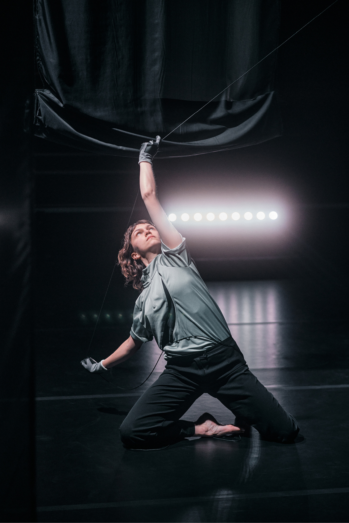 „blinds“, das bedeutet im Englischen „Jalousien“, „Markisen“ oder „Vorhänge“. Stoffbahnen aus verschiedenen Materialien, die wir aufhängen, um mehr oder weniger Licht in einen Raum zu lassen oder mehr oder weniger von ihm nach außen zu zeigen. Bei der Premiere von „blinds“ von Cornelia Böhnisch, künstlerische Co-Leiterin (Konzept, Raum und Choreografie) im Toihaus Theater in Salzburg, wird dann auch ein Ensemble von Stoffbahnen ganz materiell zu Protagonisten.
