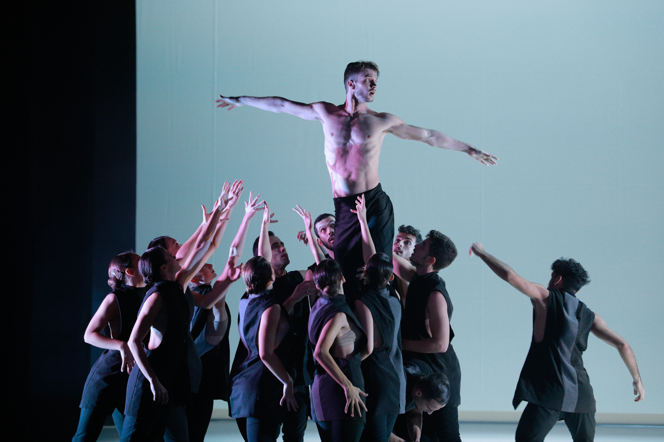 Ginz’ freimütige Interpretation von Carl Orffs szenischem Oratorium, das inhaltlich auf eine mittelalterliche Sammlung von Liedern und Gedichten zurückgeht, die von Mönchen einst als eine Art Befreiungsakt gegen die strenge klösterliche Regelkonformität niedergeschrieben wurde, entwickelt sich nach und nach zu einem Ritual mit Kreisschluss. Seine 14 Tänzerinnen und Tänzer lässt der israelische Choreograf – tanztechnisch geprägt sowohl von Martha Graham als auch von Ohad Naharin, in dessen Batsheva Dance Company er früher Ensemblemitglied war – ein Fest der Liebe, Jugend und Lebensfreude feiern. Aufgeladen ist sein Stück aber vor allem mit unmissverständlich starken erotischen Momenten.