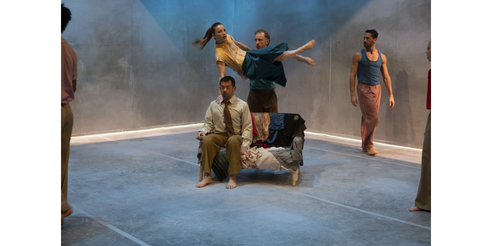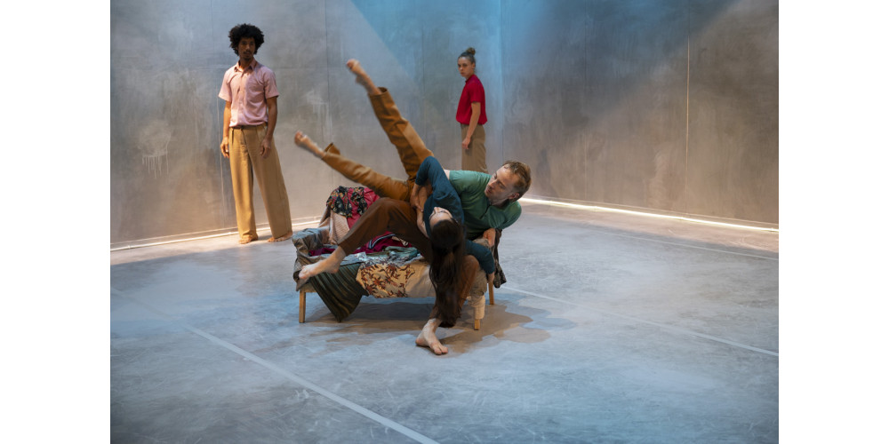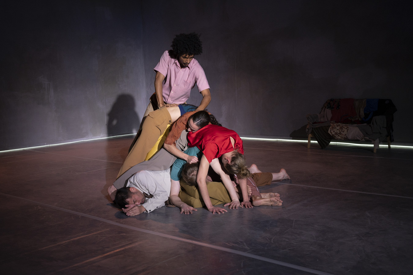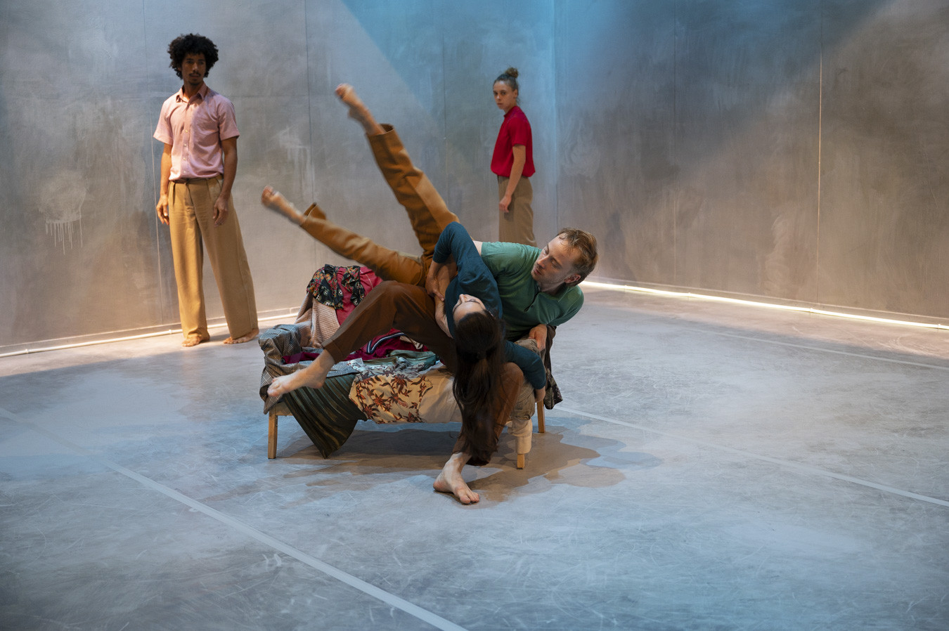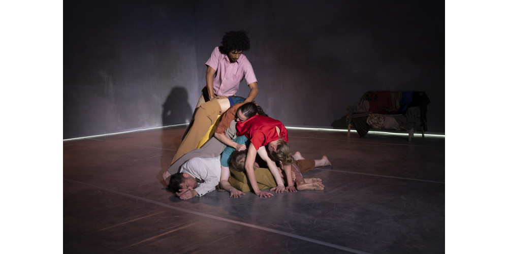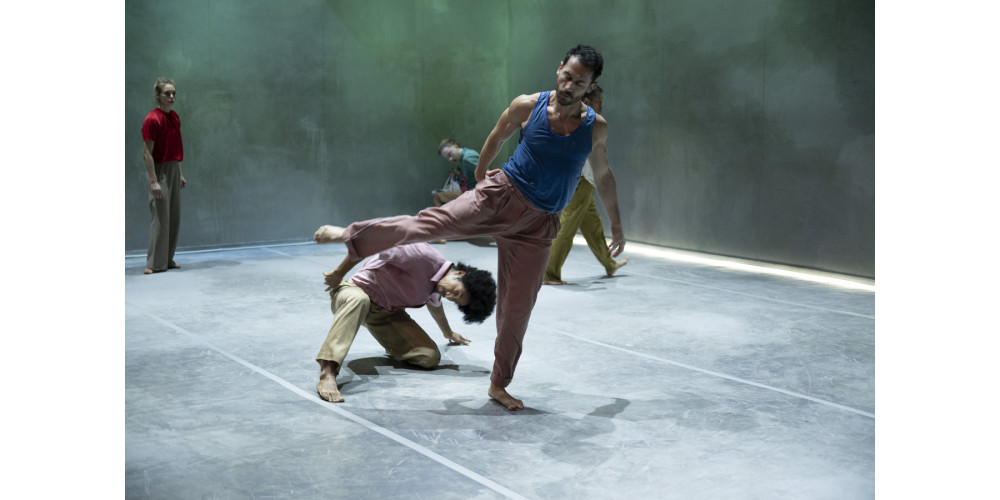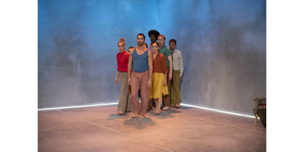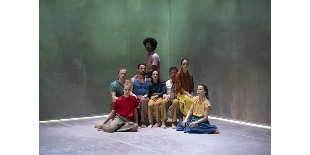 Ich gehöre zu den „Wiederholungstätern“, wenn ich ein Stück fotografiert habe und später die Möglichkeit und Zeit habe das Stück noch einmal fotografieren zu können, dann tue ich es. Bei „les égarés“ von Toula Limnaios bot sich diese Chance und es hat mich wieder voll gefordert. Vor allem weil bei diesem Stück die Zuschauer*innen auf zwei Seiten verteilt sitzen und es daher keine Hauptsichtachse gibt. Die acht Tänzer*innen sind immer rasant unterwegs. Wenn ein Augenblick vorbei ist, ist er vorbei, es gibt kaum eine zweite Chance für ein Foto. Dumm, wenn man wieder auf der falschen Seite stand. Immerhin hatte ich Gelegenheit, das Stück nochmal einfach als Zuschauer zu erleben, und dann erst sehe ich, was ich beim Fotografieren nicht gesehen habe.