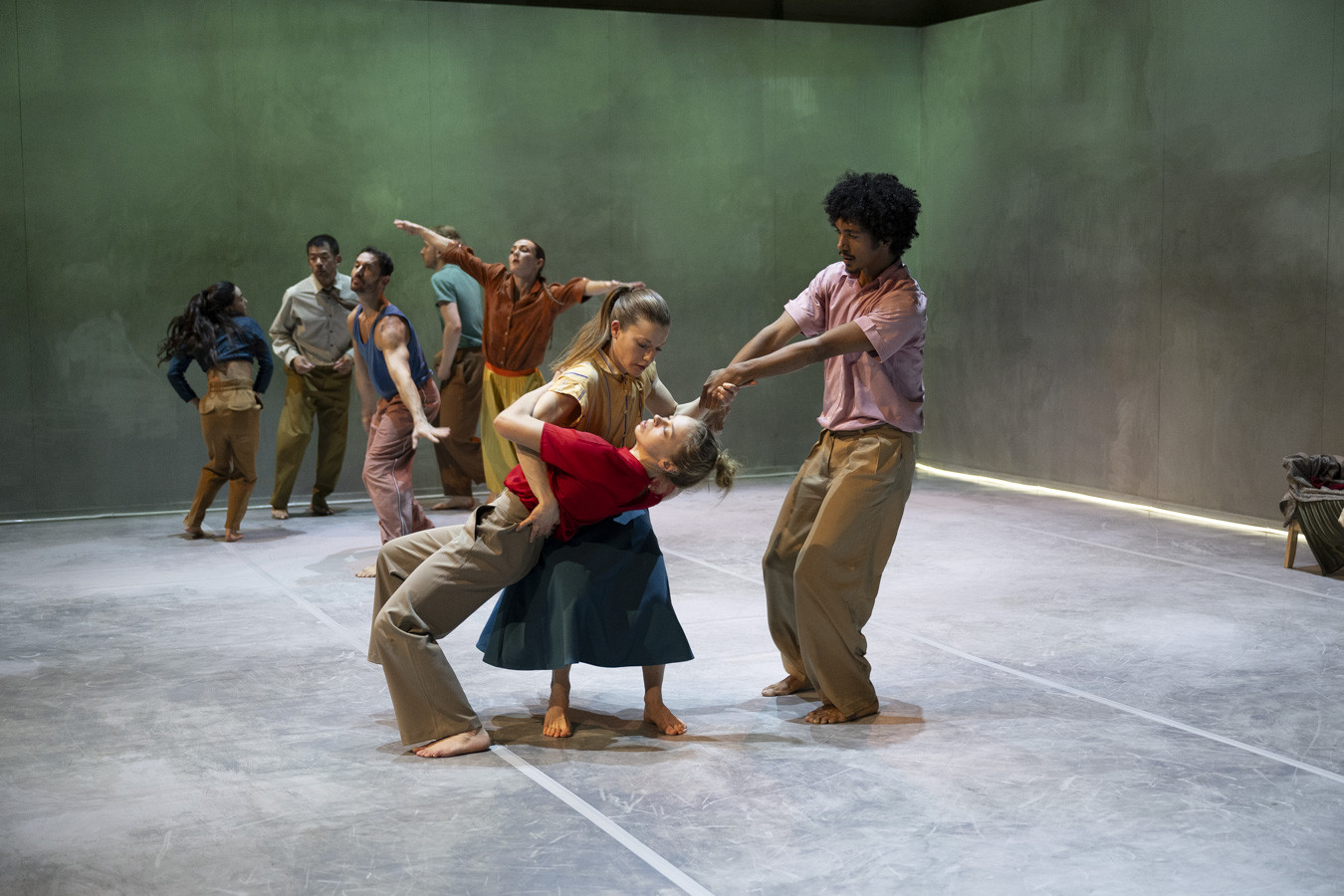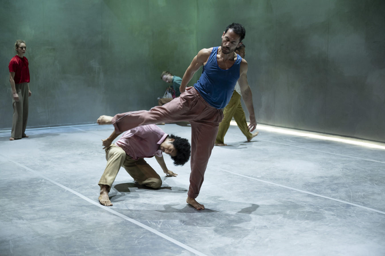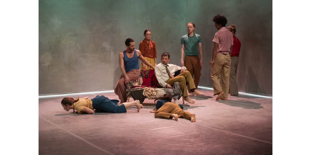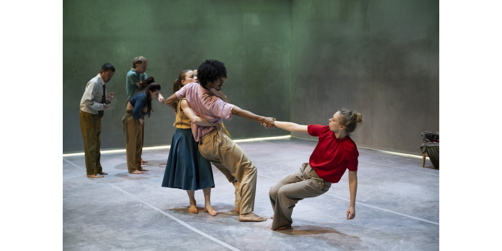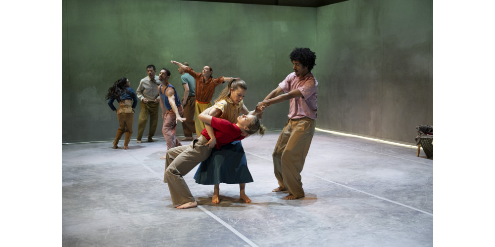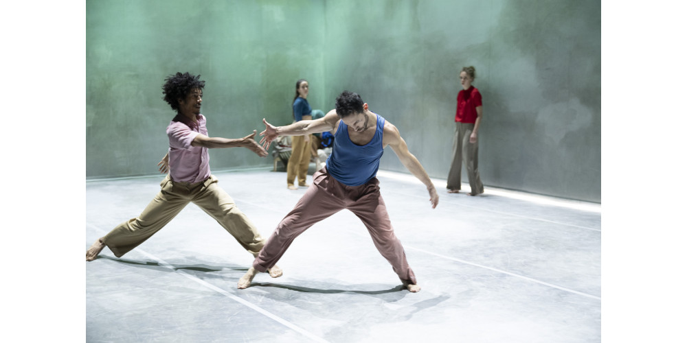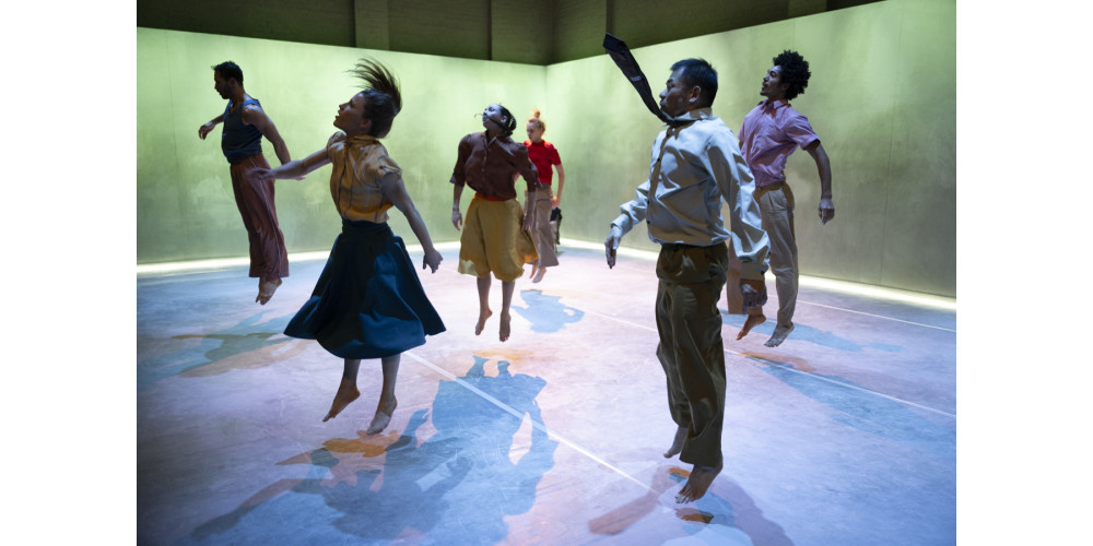 Ich gehöre zu den „Wiederholungstätern“, wenn ich ein Stück fotografiert habe und später die Möglichkeit und Zeit habe das Stück noch einmal fotografieren zu können, dann tue ich es. Bei „les égarés“ von Toula Limnaios bot sich diese Chance und es hat mich wieder voll gefordert. Vor allem weil bei diesem Stück die Zuschauer*innen auf zwei Seiten verteilt sitzen und es daher keine Hauptsichtachse gibt. Die acht Tänzer*innen sind immer rasant unterwegs. Wenn ein Augenblick vorbei ist, ist er vorbei, es gibt kaum eine zweite Chance für ein Foto. Dumm, wenn man wieder auf der falschen Seite stand. Immerhin hatte ich Gelegenheit, das Stück nochmal einfach als Zuschauer zu erleben, und dann erst sehe ich, was ich beim Fotografieren nicht gesehen habe.