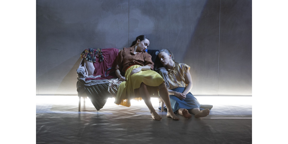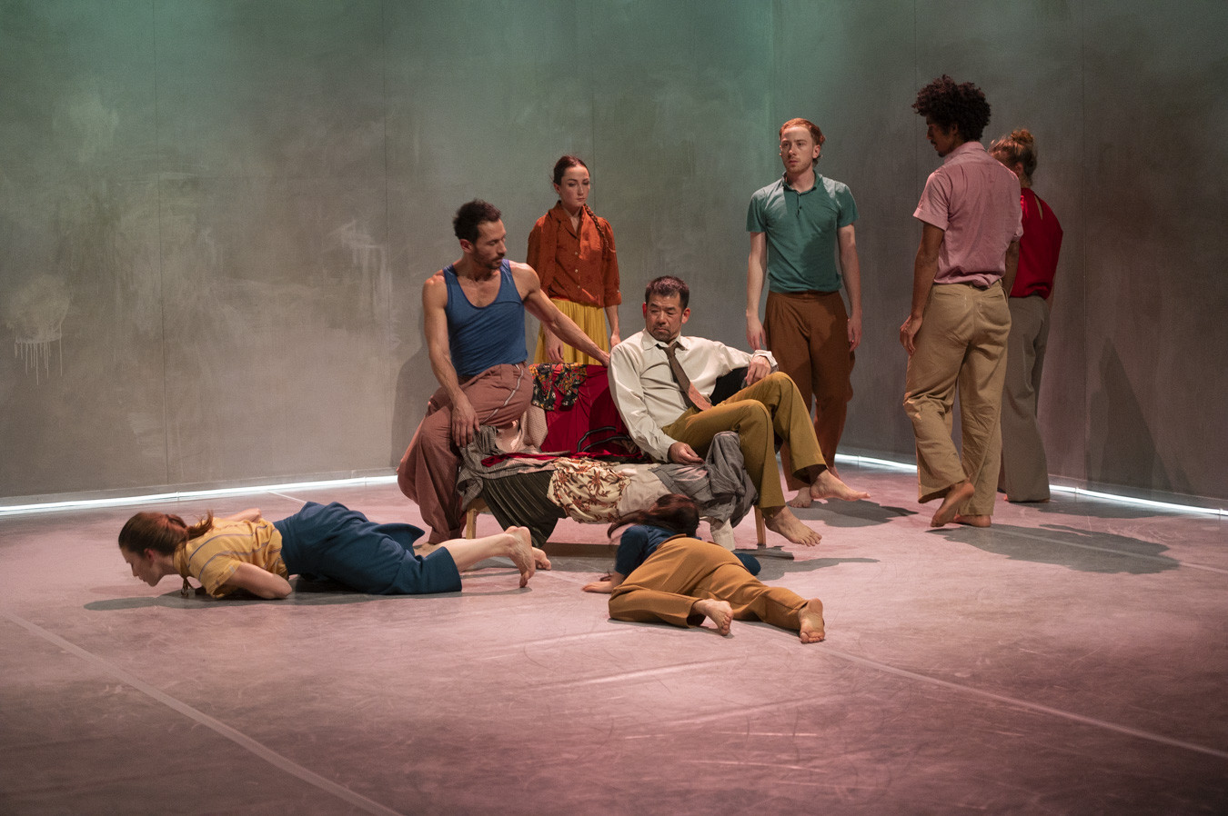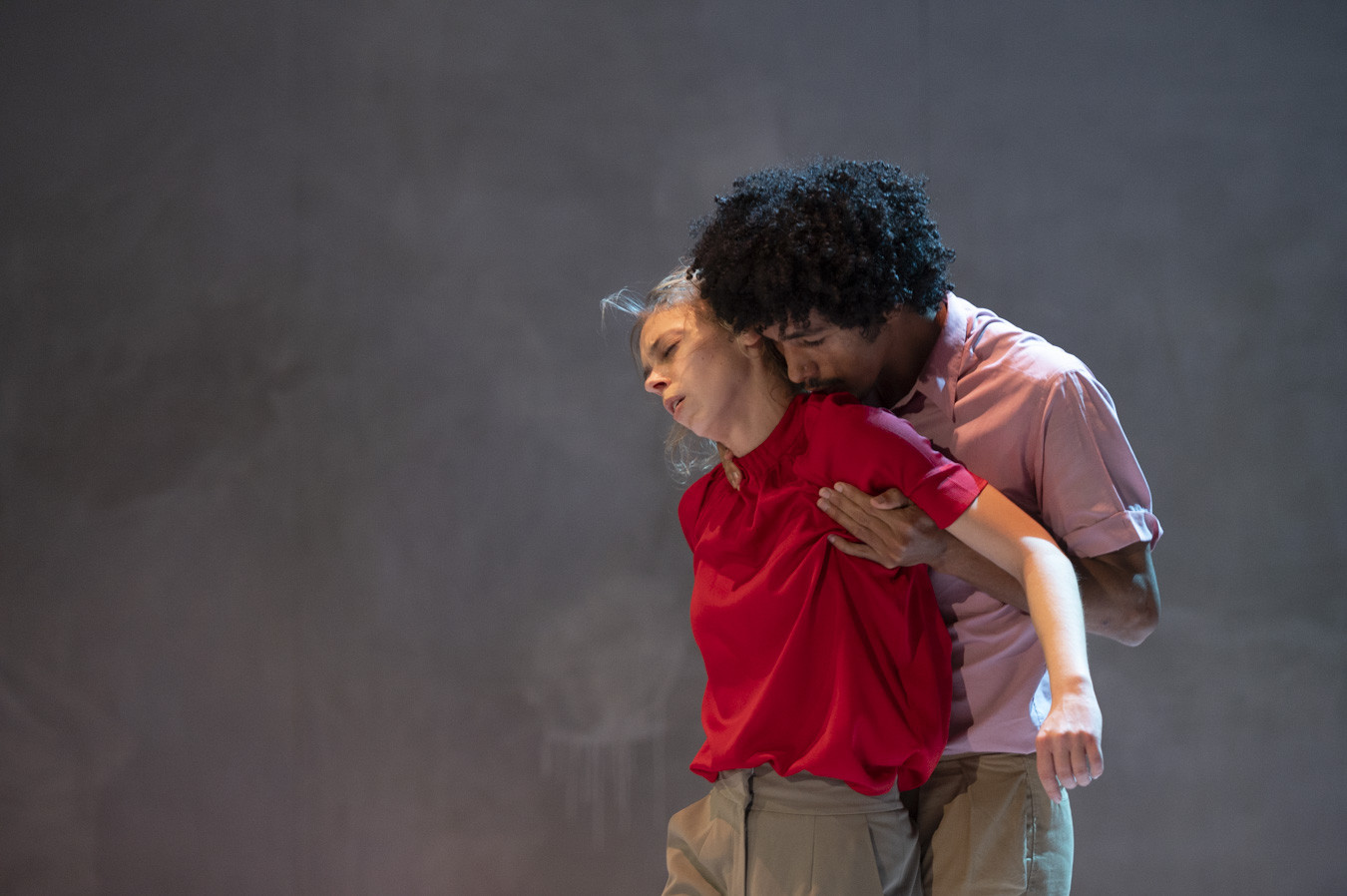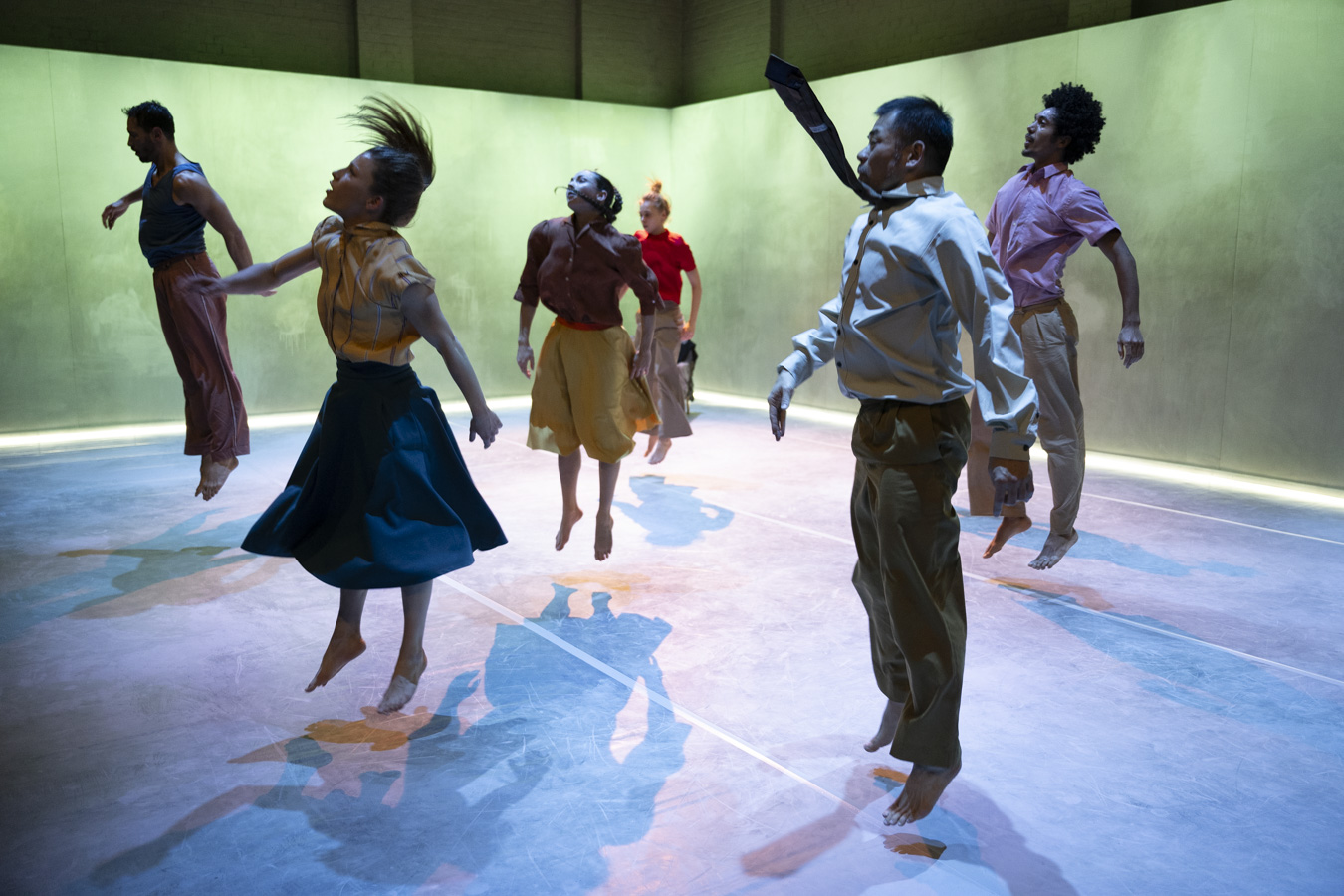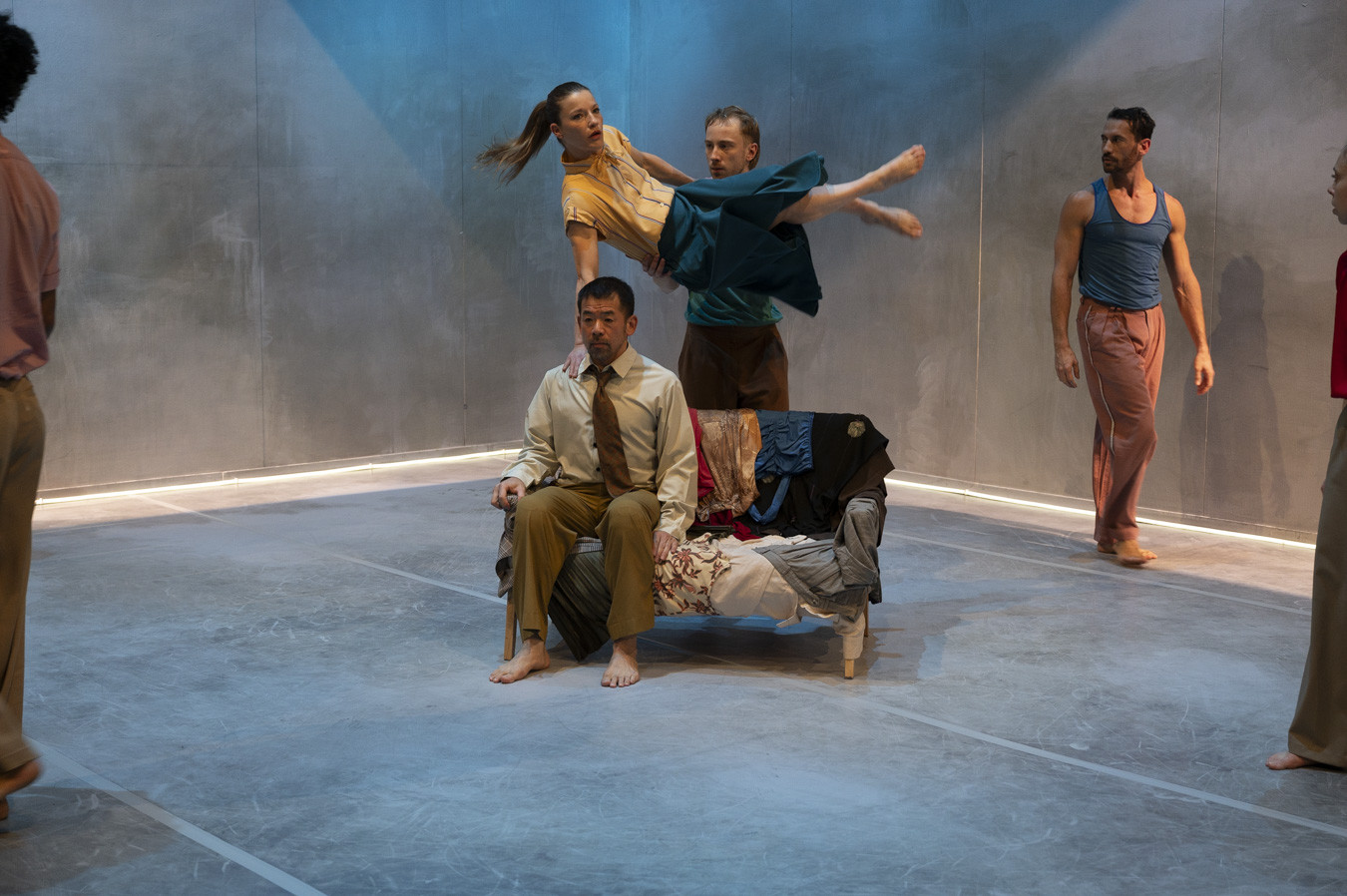 Ich gehöre zu den „Wiederholungstätern“, wenn ich ein Stück fotografiert habe und später die Möglichkeit und Zeit habe das Stück noch einmal fotografieren zu können, dann tue ich es. Bei „les égarés“ von Toula Limnaios bot sich diese Chance und es hat mich wieder voll gefordert. Vor allem weil bei diesem Stück die Zuschauer*innen auf zwei Seiten verteilt sitzen und es daher keine Hauptsichtachse gibt. Die acht Tänzer*innen sind immer rasant unterwegs. Wenn ein Augenblick vorbei ist, ist er vorbei, es gibt kaum eine zweite Chance für ein Foto. Dumm, wenn man wieder auf der falschen Seite stand. Immerhin hatte ich Gelegenheit, das Stück nochmal einfach als Zuschauer zu erleben, und dann erst sehe ich, was ich beim Fotografieren nicht gesehen habe.