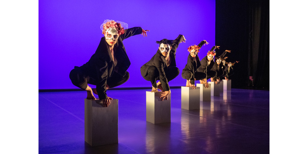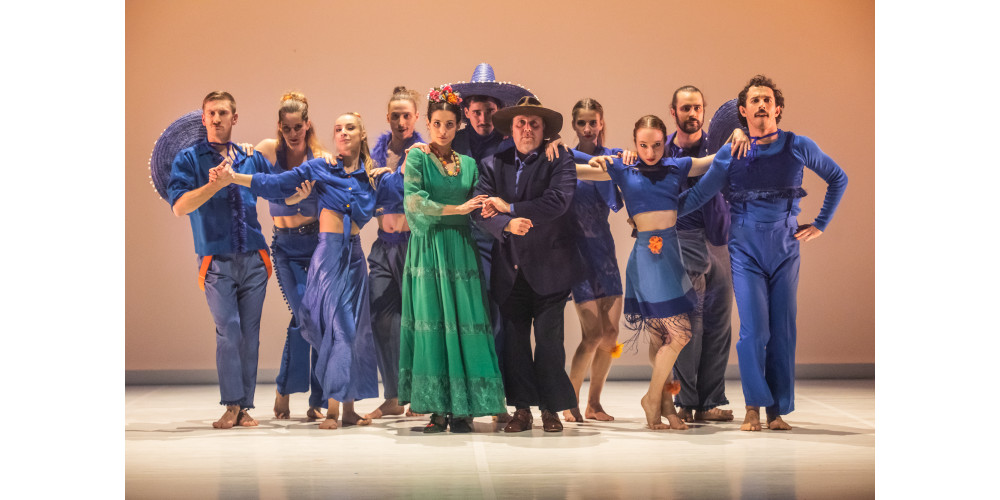 Sich mit Frida Kahlo zu beschäftigen, scheint gerade en vogue zu ein. Die ungarische Choreografin Éva Duda hat ihr Stück „Frida“ bereits 2022 zur Uraufführung gebracht. Entstanden ist keine Biografie, sondern eine Abfolge von Bildern, die von Kahlos Werken, aber auch ihrem Leben inspiriert wurden. Die zahlreichen aufwendigen Kostüme von Kató Huszár und Julcsi Kiss, die Videoprojektionen von Gábor Karcis und Mátyás Fekete sowie die Kompositionen von Izsák Farkas und Tibor Molnár tragen dazu bei, dass man wirklich von einem Gesamtkunstwerk sprechen kann. Choreografisch arbeitet Duda mit der Bewegungssprache des modernen Tanzes, wobei einige Bewegungsmuster wie ein roter Faden im Stück immer wieder vorkommen. Auch modernisierte, mexikanisch anmutende Folklore ist zu sehen. Die Vorbereitungen für die Hochzeit zwischen Frida und Diego, sowie Diegos Seitensprünge werden stummfilmhaft mit Mitteln des Slapsticks gezeigt.