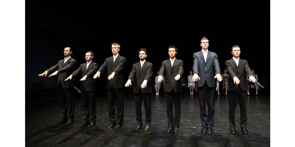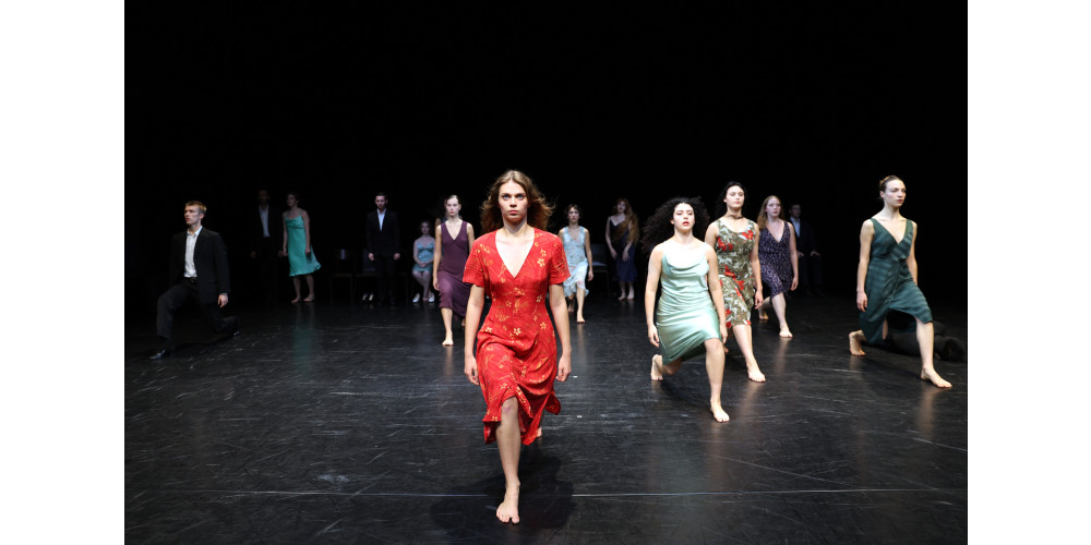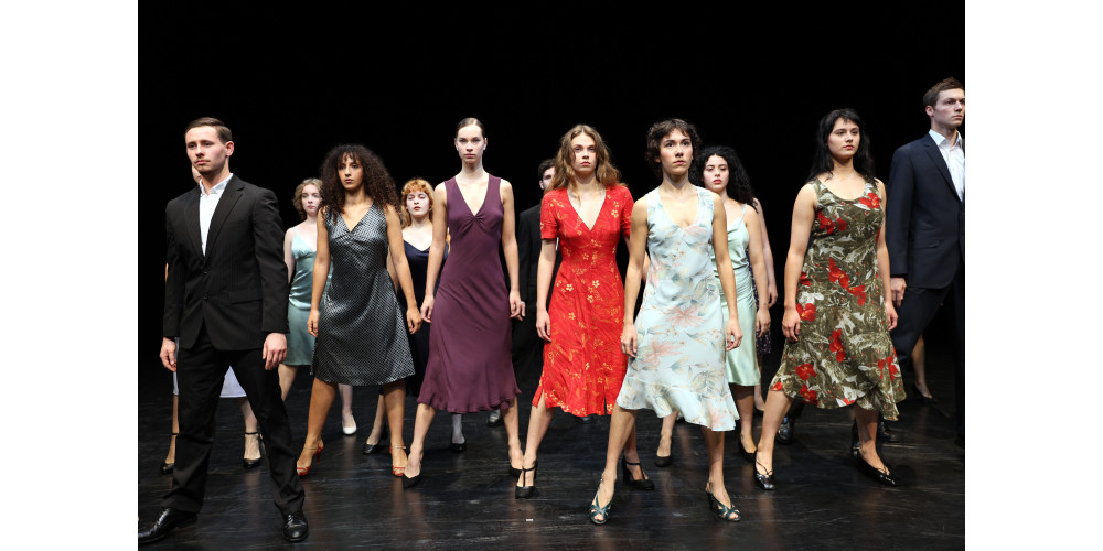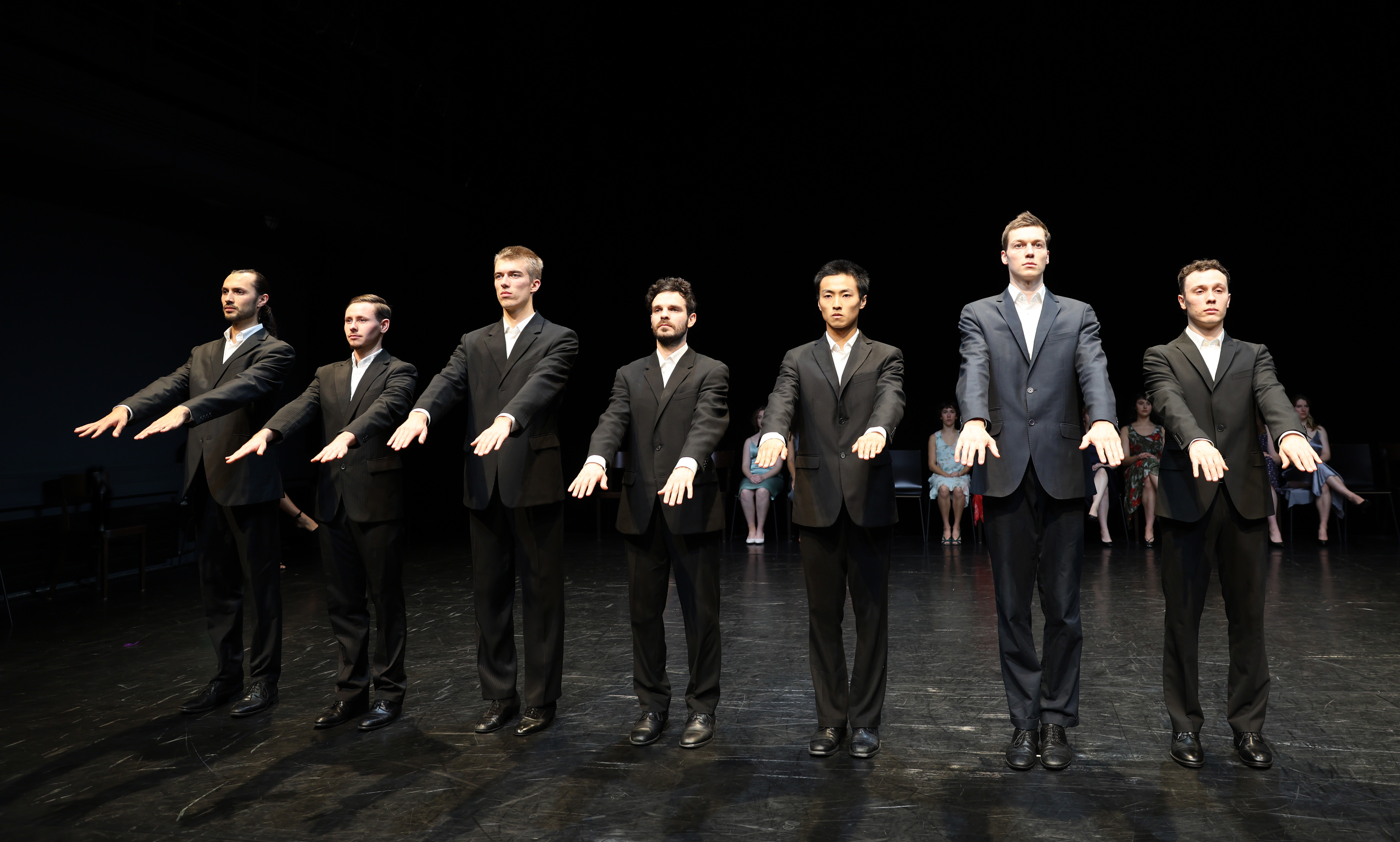 Ich war mal wieder an der Folkwang Universität der Künste. Studierende des 2. Jahrgangs haben hier Ausschnitte aus dem Stück „Kontakthof“ von Pina Bausch, Tanztheater Wuppertal 1978 auf der Bühne der Universität aufgeführt.