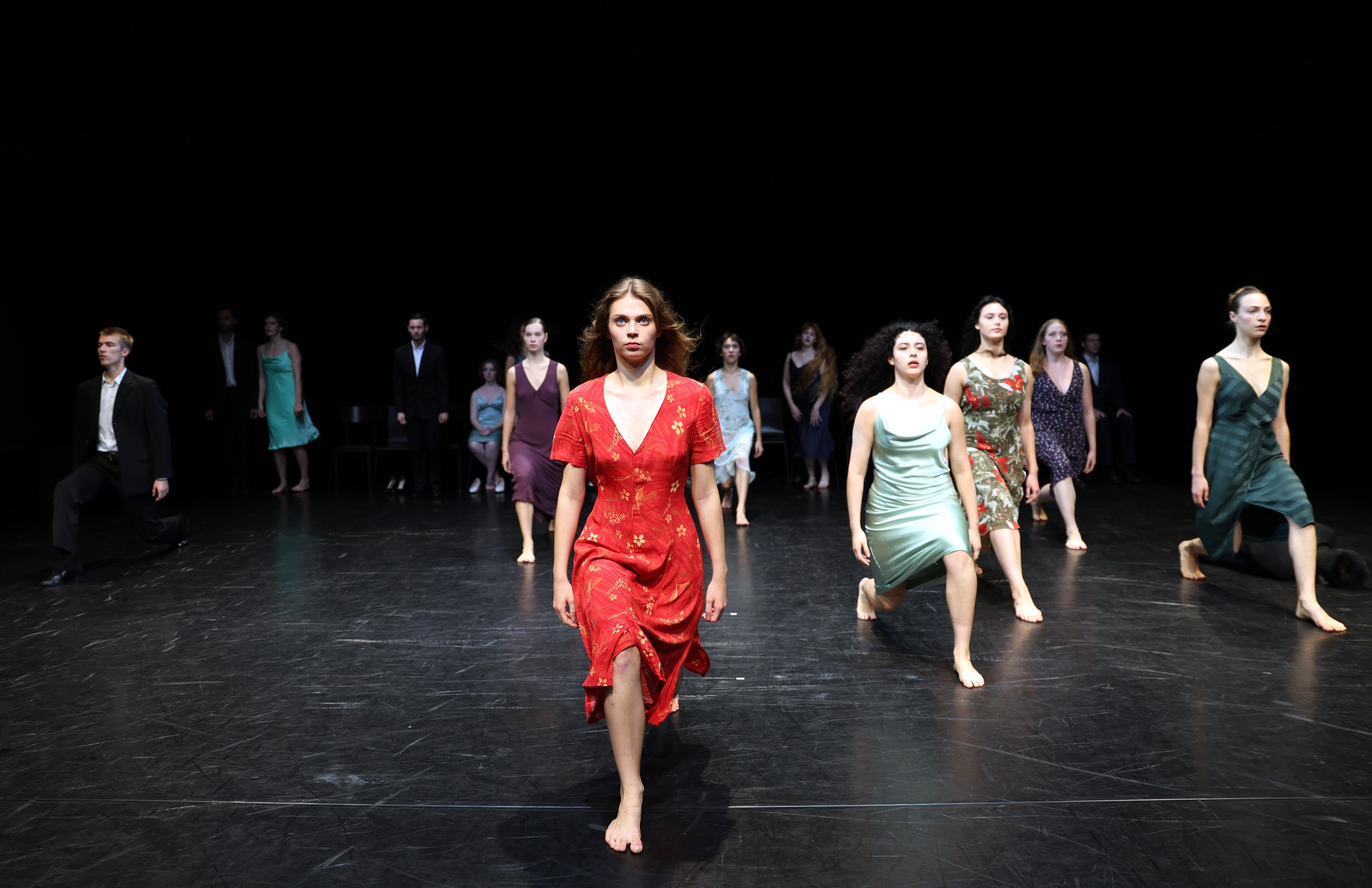 Ich war mal wieder an der Folkwang Universität der Künste. Studierende des 2. Jahrgangs haben hier Ausschnitte aus dem Stück „Kontakthof“ von Pina Bausch, Tanztheater Wuppertal 1978 auf der Bühne der Universität aufgeführt.