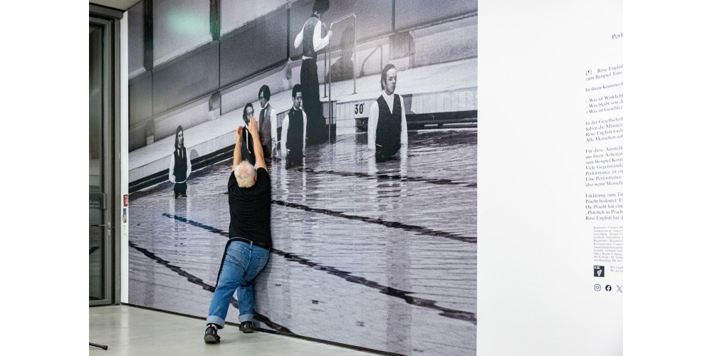 Der österreichische Choreograf führt in seiner einstündigen Performance das Publikum durch die mit allerlei Fotografien, Videoprojektionen, großformatigen Wandbildern und prachtvoll-ironischen Objekten kuratierten Räume und lässt es auf besondere Weise an den interdisziplinären Werken der britischen Künstlerin Rose English teilhaben. Diese bewegen sich zwischen Tanz, Zirkus, Varieté und Oper im Spannungsfeld feministischer Diskurse der 1970er Jahre.