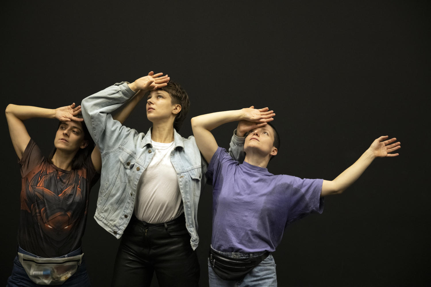Die Choreografien der zeitgenössisch ausgebildeten Tänzer*innen verweben sich mit gesprochenem Text und bilden zusammen mit dem von Annie Bloch live kreierten elektronischen Klangteppich komplexe Deutungsebenen. Fundamentales Element der Performance stellt der Text und das Spiel damit dar.