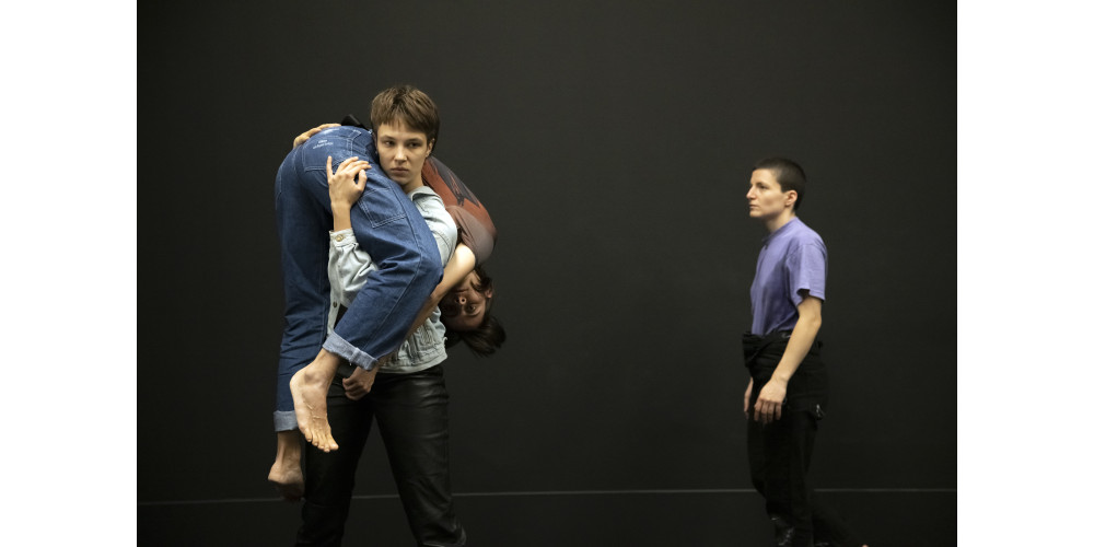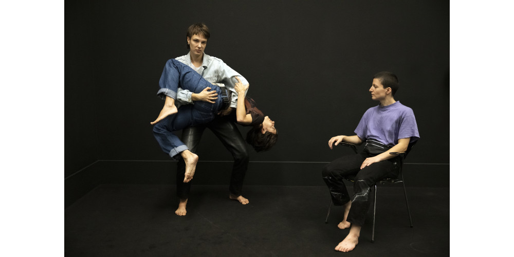In „Langes Wochenende“ gehen die Künstler*innen zunächst einen verbalen Vertrag mit dem Publikum ein. Fragen nach freiwilliger Einwilligung, die Zuschauenden als Projektionsfläche ihrer Realität zu nutzen, die Körper als Platzhalter vergangener Berührungen, uns direkt mit einem angesprochenen „Du“ als neutrales Pronomen zu adressieren. Safe words und Gesten für aktiven Konsens und dessen Verwehrung werden kommuniziert und geübt.