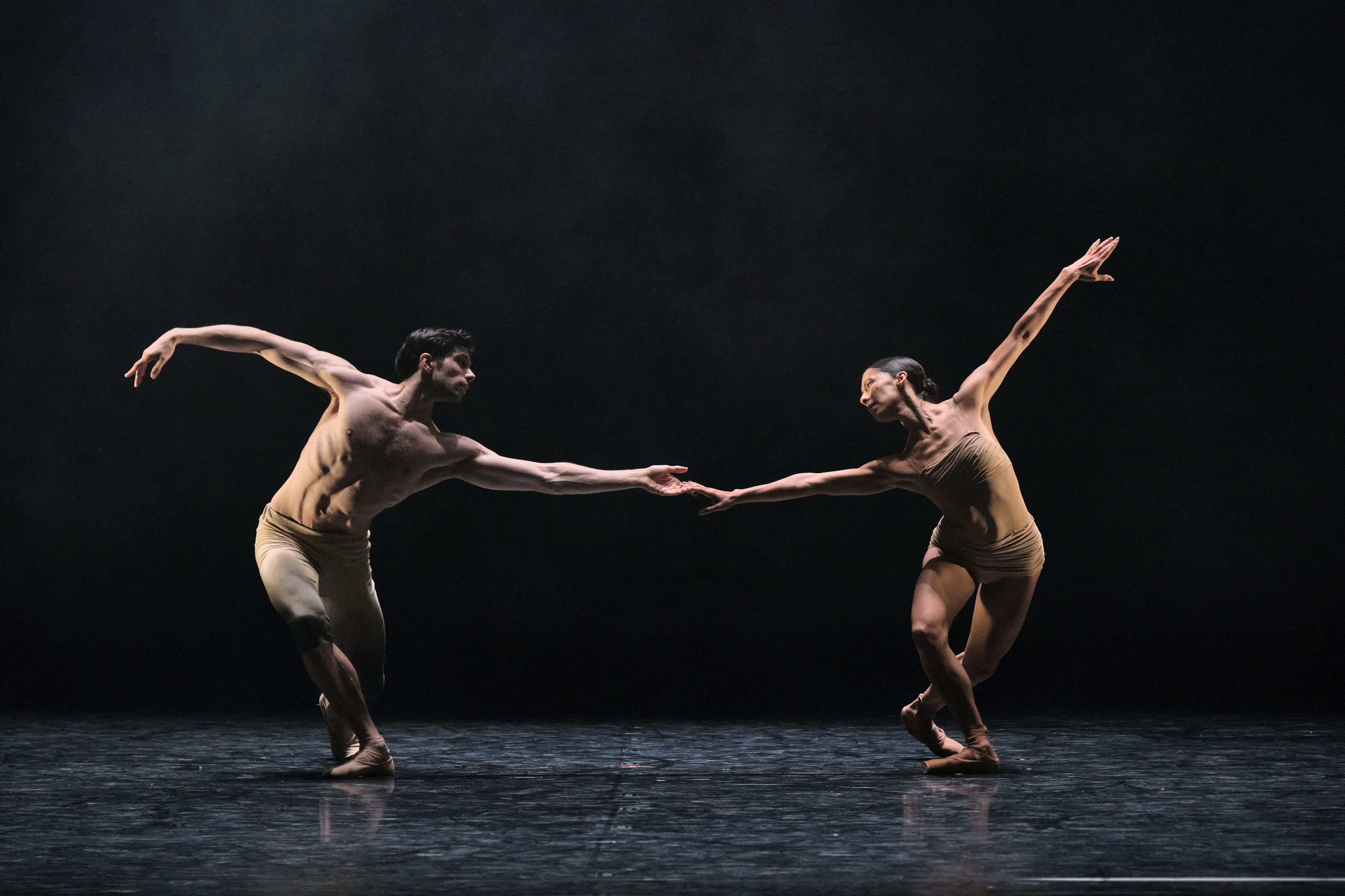 Zu Beginn die Ballszene aus Spucks „Bovary“, das er zu Saisonbeginn für das Staatsballett kreiert hat. Eine gute Möglichkeit, das starke corps de ballet zu präsentieren. Gleich darauf ein Kontrast: „Aria“ von Douglas Lee mit Ksenia Ovsyanick und David Soares. Düster wirkt das spannende gut getanzte Duo mit vielen