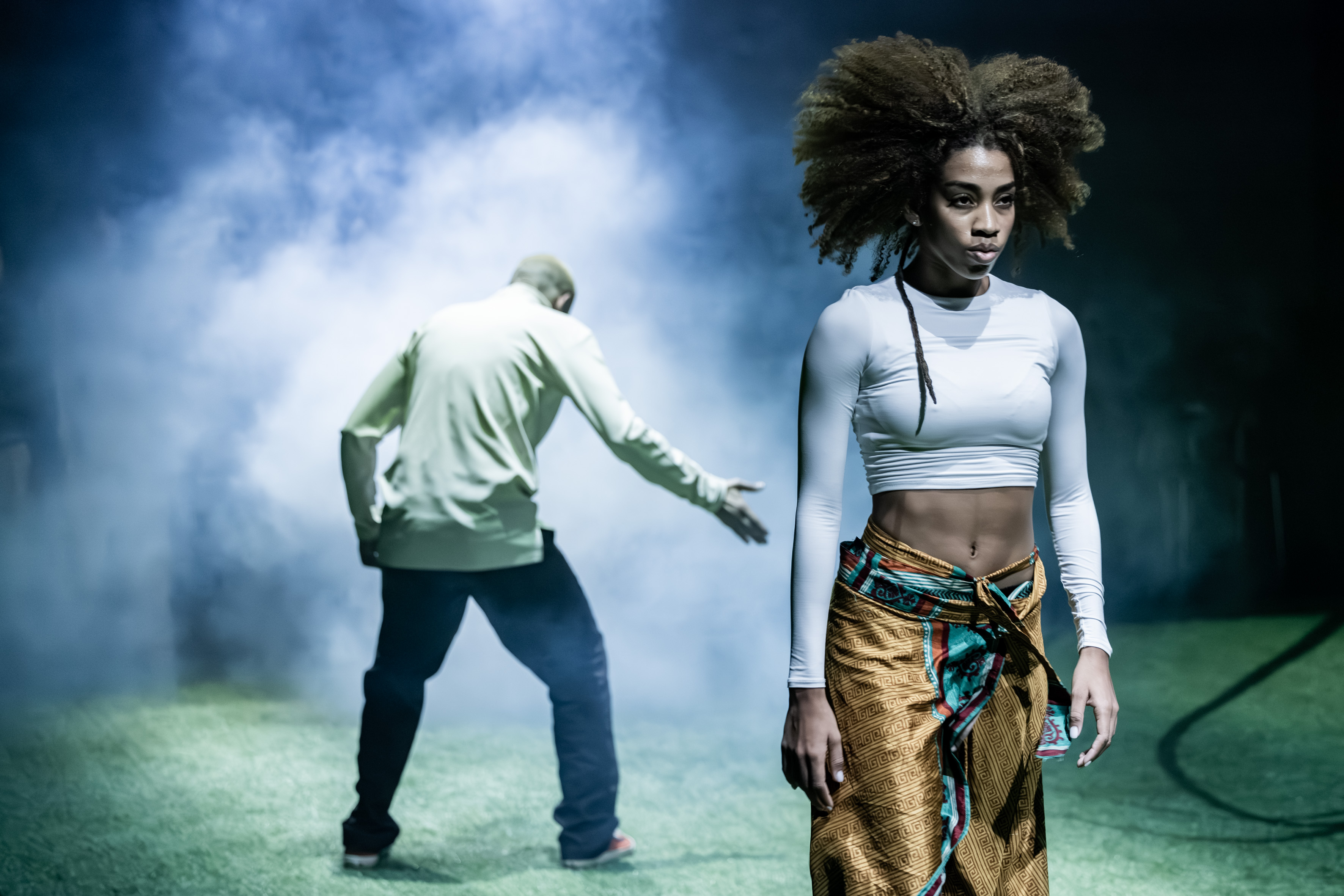 Das Urban Arts Ensemble Ruhr hat sich hier mit der Compagnie Danza Contemporánea de Cuba zusammengetan. Auf grünem Kunstrasen, um den herum das Publikum an allen vier Seiten platziert ist, buchstabieren sie eine Art Zustandsbeschreibung durch. Die Brücke zwischen beiden Compagnien ist der Tänzer und Choreograf Julio César Iglesias Ungo. Er hat in der Vergangenheit sowohl für die Kubaner getanzt als auch für Pottporus, quasi dem Vorgänger des Urban Arts Ensemble Ruhr. Ultima Vez hat er auch noch auf der Vita stehen. Gemeinsam mit Hans van den Broeck hat er hier die Choreografie übernommen. Der wiederum, ist Mitbegründer der legendären Compagnie von Alain Platel. Choreografisch aber scheinen die beiden nicht sonderlich viel zu tun gehabt zu haben, so unspezifisch wirken über einige Strecken die Bewegungsqualitäten der Beteiligten. Das aber hat seine Gründe und gute noch dazu. Dramaturgisch wirkt ihre Arbeit desto intensiver.