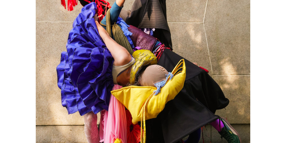 Langsam treten die Performer*innen immer weiter hinter jenes Eigenleben der Dinge, der Kostümteile zurück, verschwinden zusehends in und unter den vielen Lagen. Das lässt die Ergebnisse schließlich figürlich wirken, so dass das Ganze vom Tanz- zum Objekttheater umkippt. Das ist an sich nichts Kritikwürdiges, nur schafft diese Fokusverschiebung im Ergebnis eben etwas ganz Anderes als Tanz. Bewegung ist ja eben das, was der Körper tut. Wenn der aber nicht mal mehr sichtbar ist, liegt die Bewegung nur noch in den Dingen. Der Körper ist verschwunden und damit der Mensch.